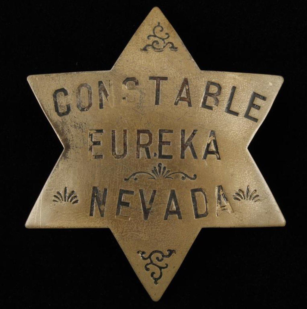Constable Eureka, Nevada badge. Small makers mark. Traces of enamel. About 1900-1910. Est.: $150-$300