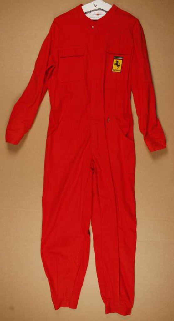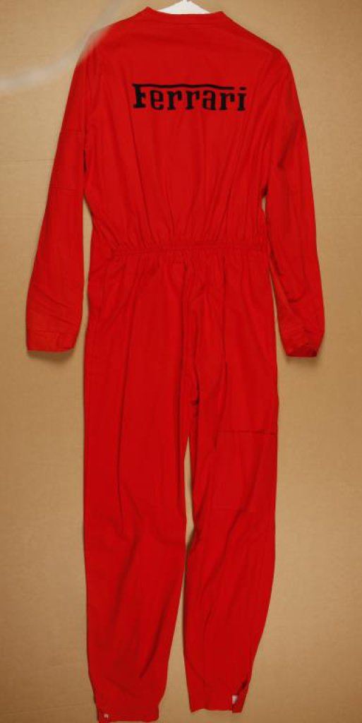 Ferrari jacket with matching pants by Toma; about medium to large; European size 60; recently dry cleaned and hung. Excellent condition. Est.: $200-$400.
