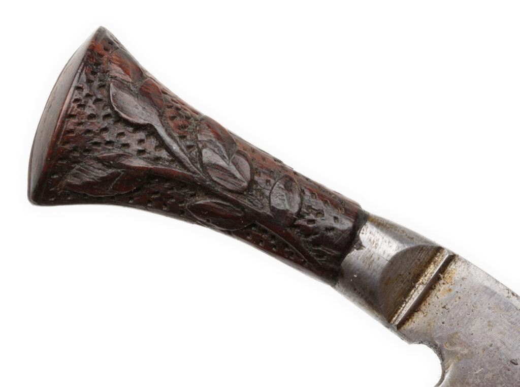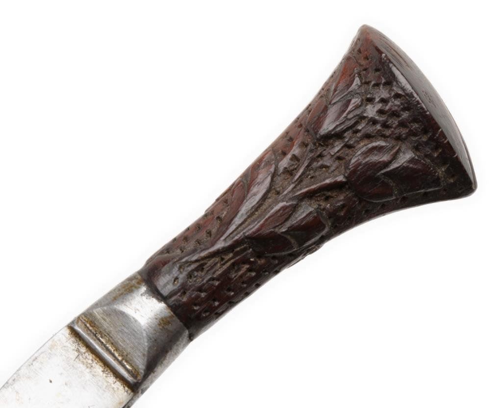 Lot 756 Fancy Nepal Tribal Gurkha with ornately carved horn handle and leather sca
