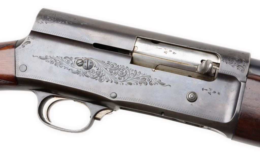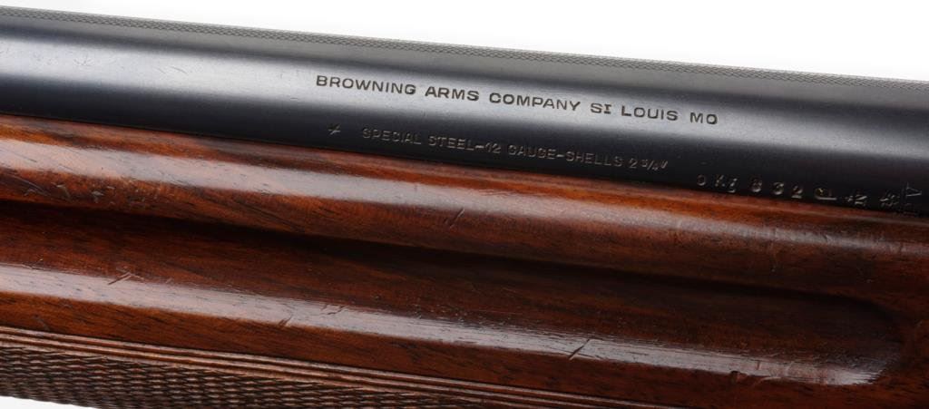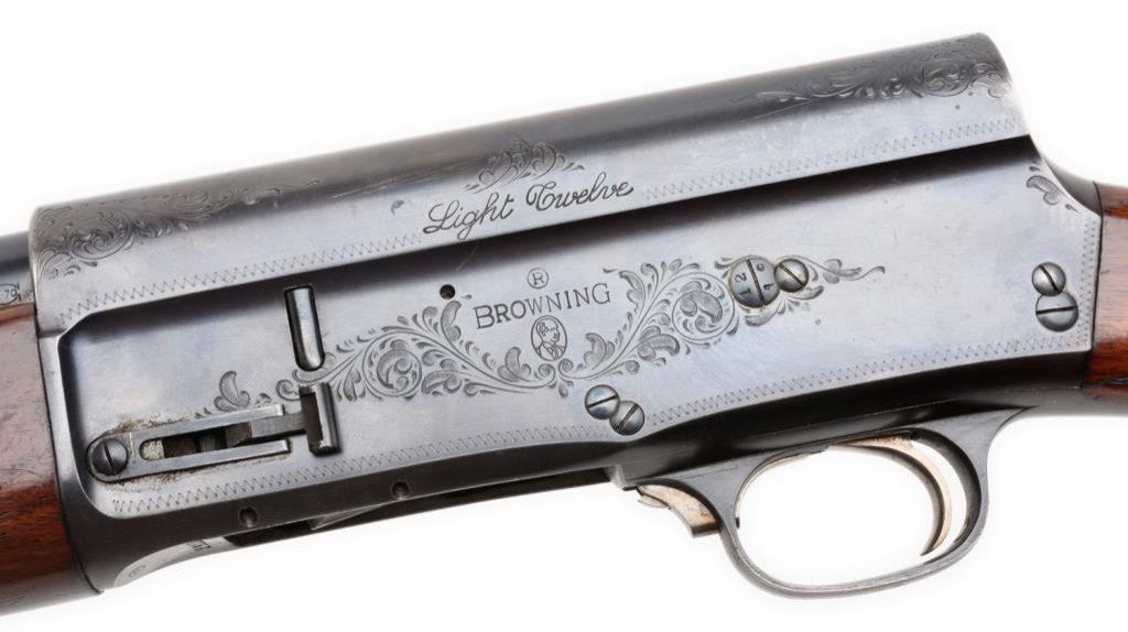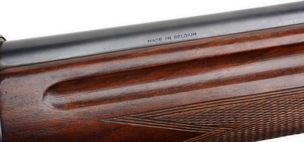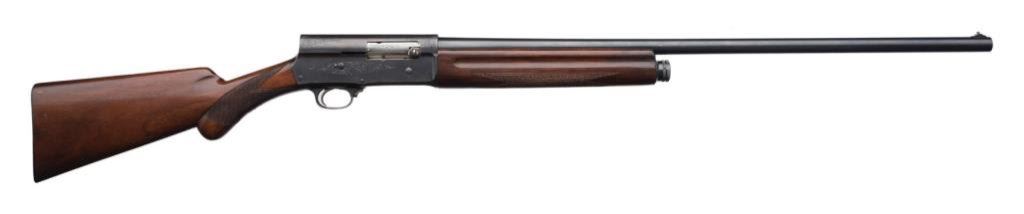 **Belgian-made Browning Light Twelve Model semi-automatic shotgun, 12 gauge, 29.5” barrel, S/N 291219, blued finish, engraved receiver, checkered wood stocks in overall fine condition. This Browning is in overall fine condition showing the majority of its original finish, fine bore, crisp action, sharp markings and near fine wood with only minor old storage mars and scratches. Est.: $600-$900.