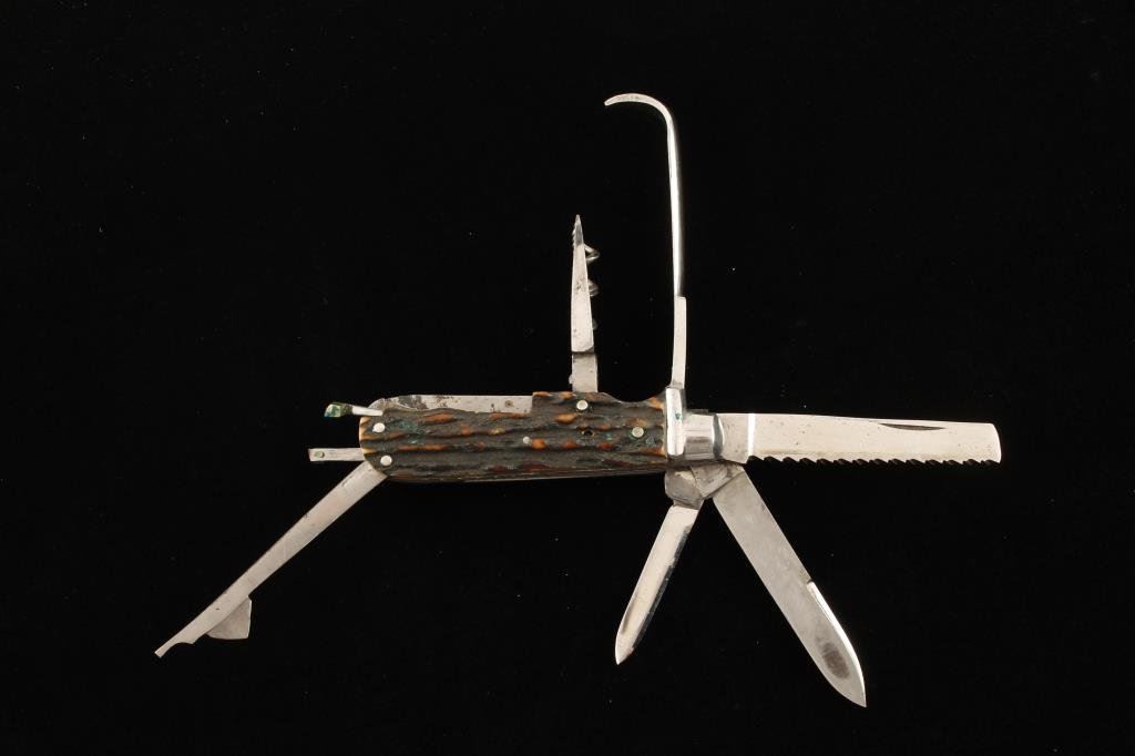 Lot 800 Rare multi-blade/tool Ferrier’s pocket knife with stag slabs marked “I.X.L