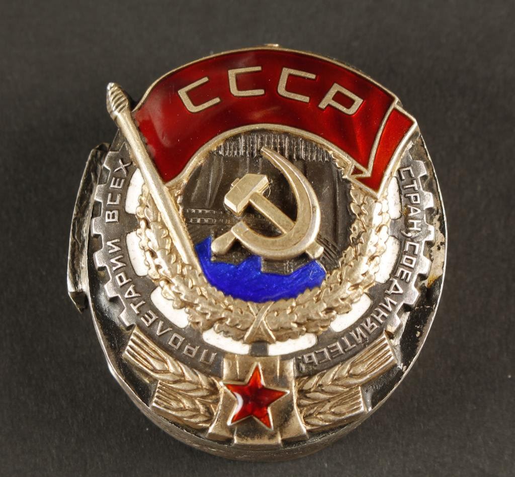 Russian Officers silver and gold pillbox with visor cap brought to America by immigrant. The pillbox appears 50 to 75 years old and is of high quality. The visor Is somewhat later probably 1950s to 60s during the Cold War era. The story was the pillbox contained death pills for the officer who worked in East Germany and in case he was captured. Est.: $400-$800