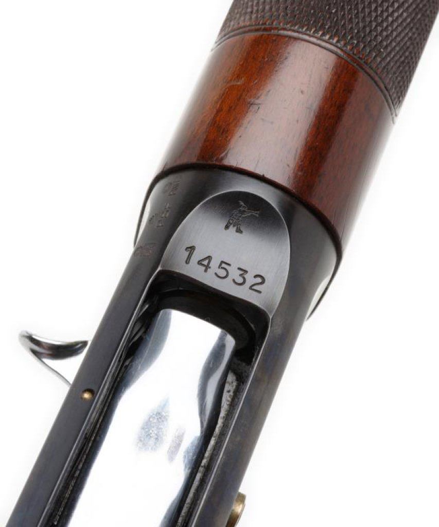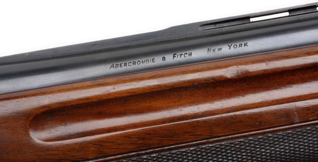 *Italian Franchi Superange Model semi-automatic shotgun, 12 gauge, 32” ventilated rib barrel with “ABERCROMBIE & FITCH/NEW YORK” marked on right side of barrel at breech; S/N 14532, blued finish, checkered wood stocks with red hard rubber butt pad. This shotgun is in overall fine condition displaying the majority of its original finish with just a couple spots of surface erosion from storage; fine bore, crisp action, sharp markings and very good + stocks. Est.: $500-$750.