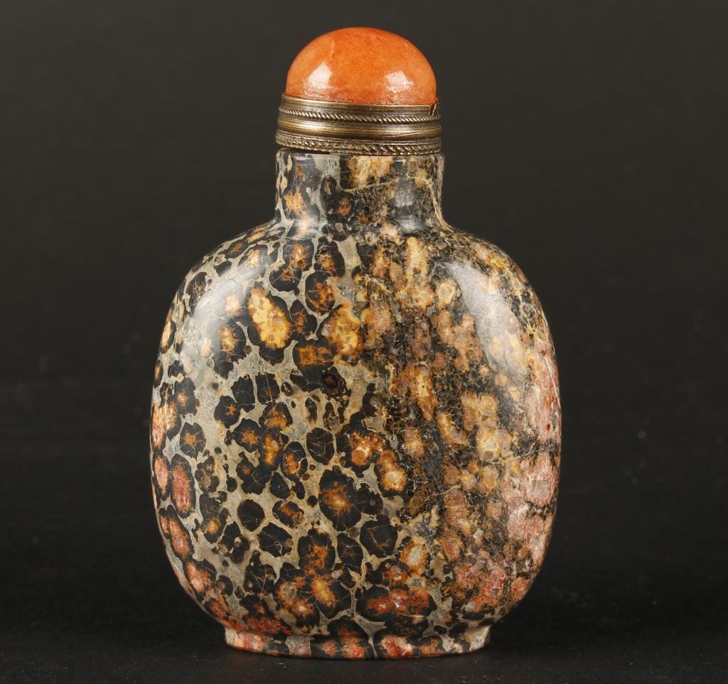 Lot 845 Red leopard Jasper stone snuff bottle, ca 1900. Est.: $500-$1,000.