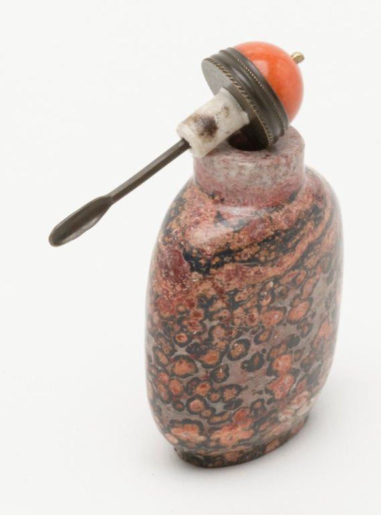 Lot 846 Red leopard Jasper stone snuff bottle, ca 1900. Est.: $500-$1,000.