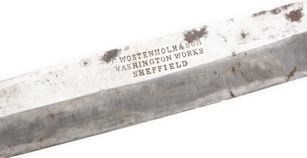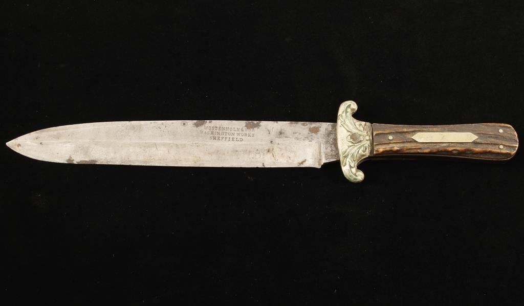 Lot 854 Spear point Bowie knife marked “G. WOSTENHOLM & SON/WASHINGTON WORKS/SHEFF