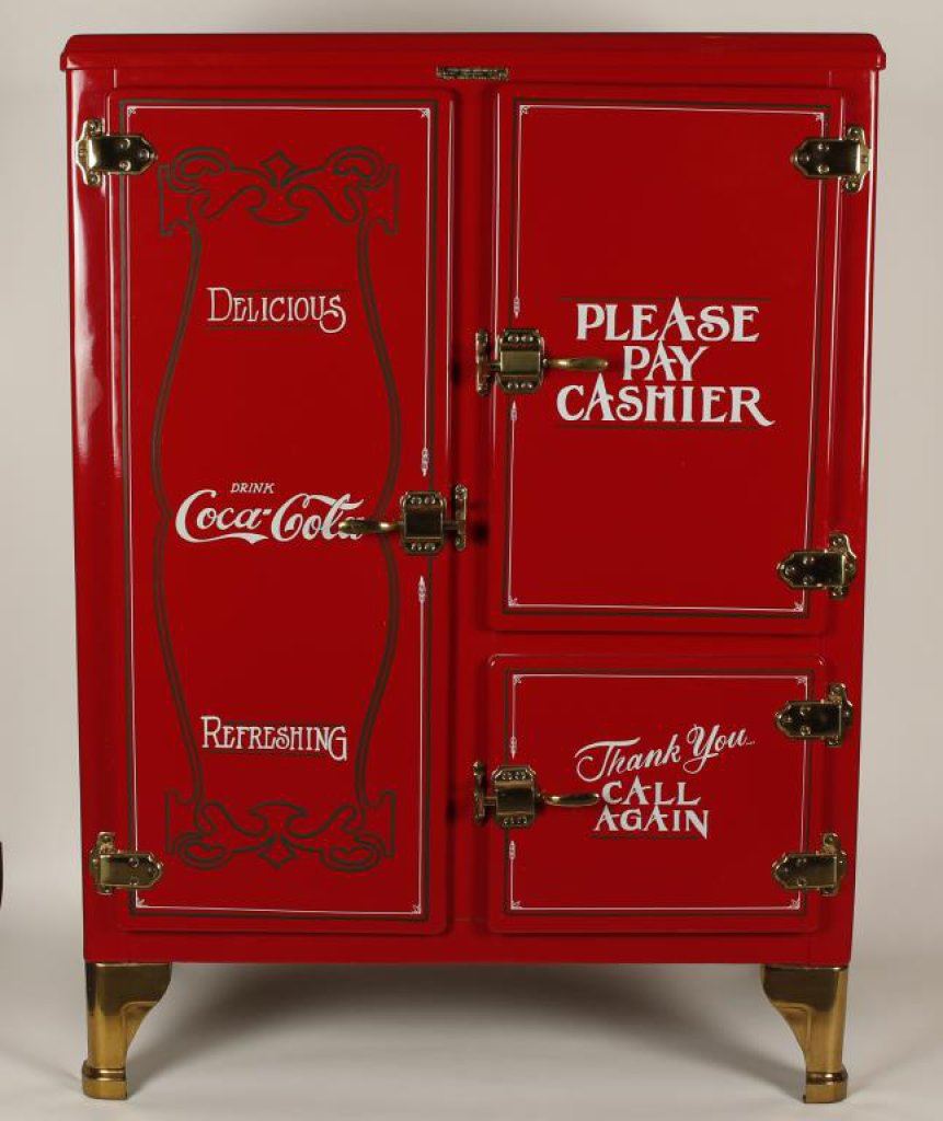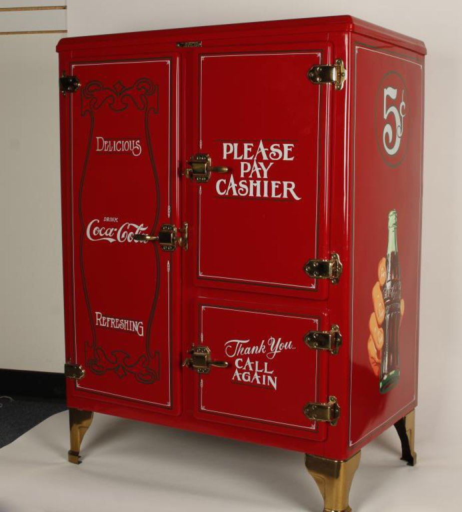 Lot 924 Beautifully restored metal ice box style Coca Cola vending machine; approx