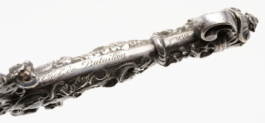 Ornate Victorian era presentation dagger by famous arms maker Lefaucheux, approximately 11.75” overall with a 6” blade; signed and presented to Chef d Batalion (leader); extraordinarily extensive design work on sheath, blade grip and pommel! Est.: $1,500-$3,000.