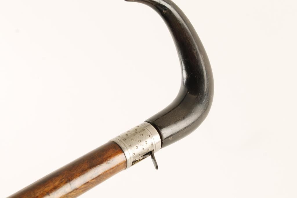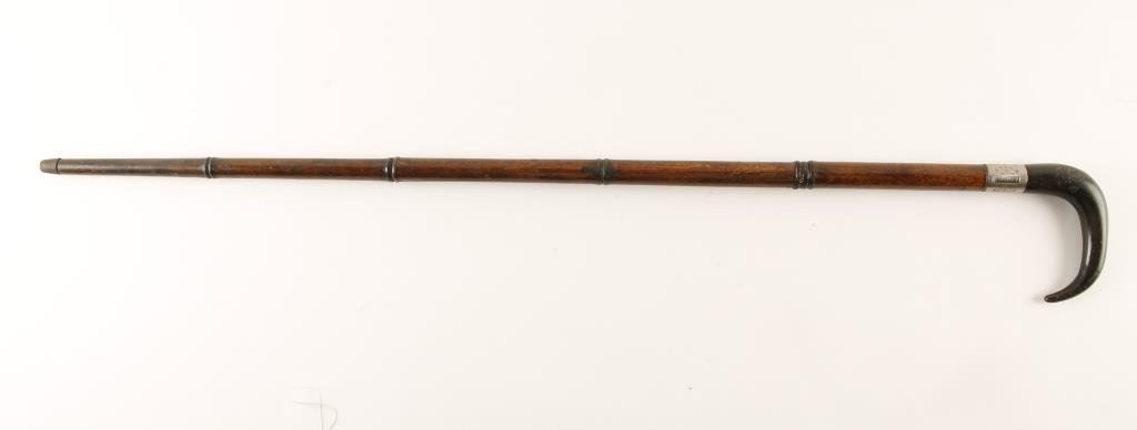 Antique cane gun of Continental manufacture, ca 1870’s; .32RF caliber, approximately 36” overall; horn grip; working mechanism at time of description and overall good condition. Est.: $900-$1,800.