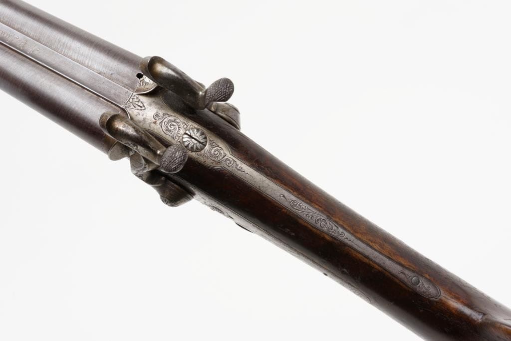 Lot 968 Double barrel side by side pinfire shotgun by F. Le Page in original fitte
