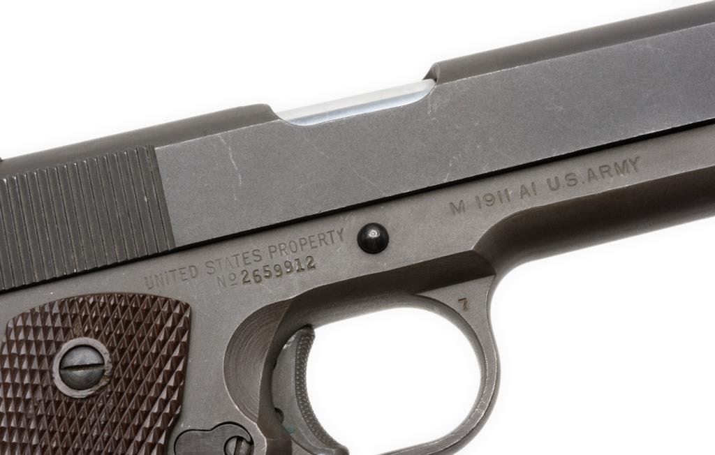 Lot 976 **U.S. Property-marked Model 1911-A1 semi-auto pistol by Ithaca, .45 calib