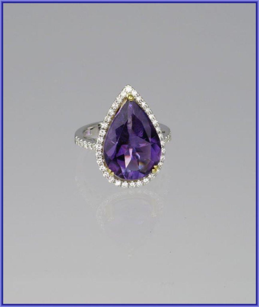 Lot 1006 Wonderful Pear Shaped Amethyst and Diamond Ring featuring a Fine amethyst