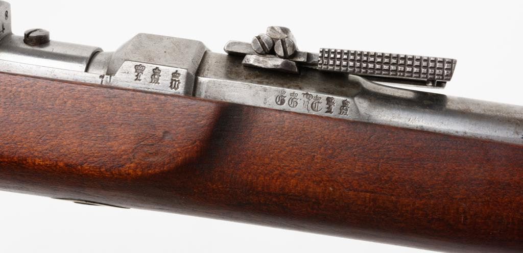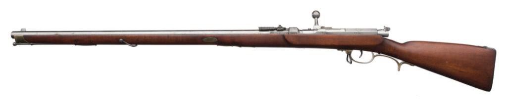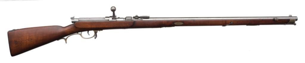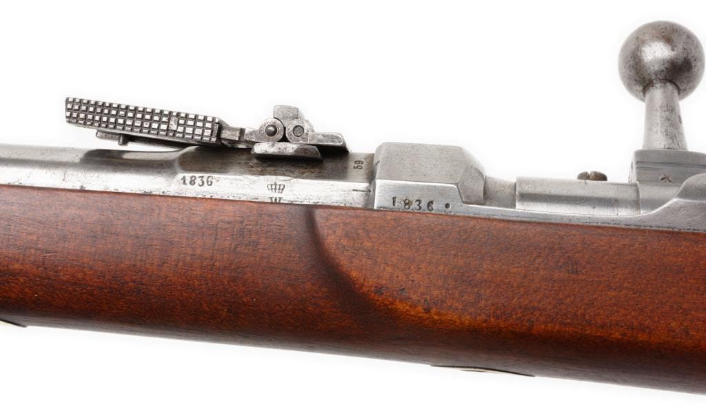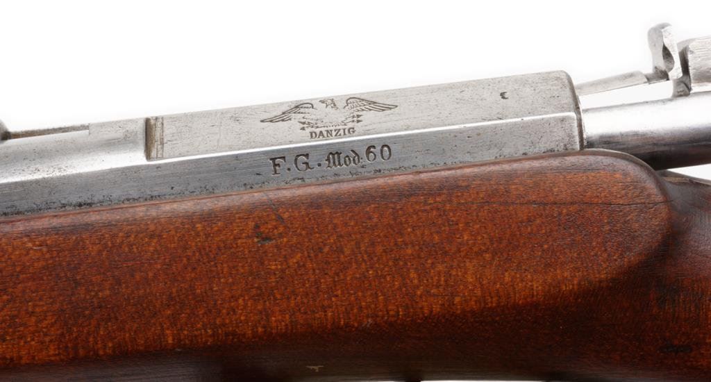 Danzig Arsenal Model 1860 needle rifle, .65 caliber, 30” barrel, S/N 1836, full stock, receiver dated 1869; very good overall with a fine bore; lightly cleaned; unit marking on butt. Seldom found in this Country. Est.: $1,750-$3,500.