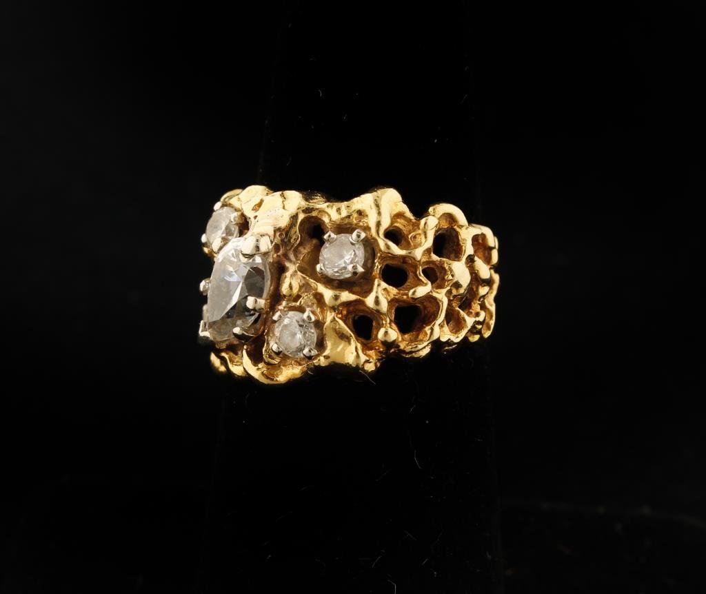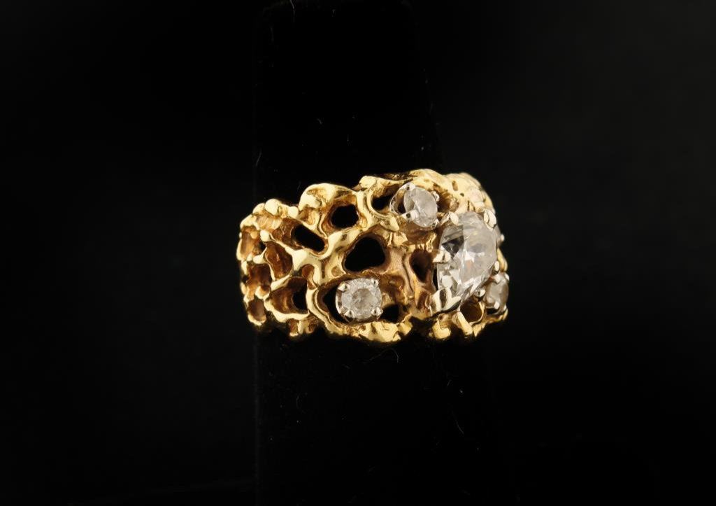 Lot 1023 Vintage wrought gold 14K ring set with 1 pear shape diamond est. 60-70 PTS
