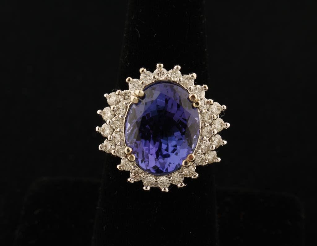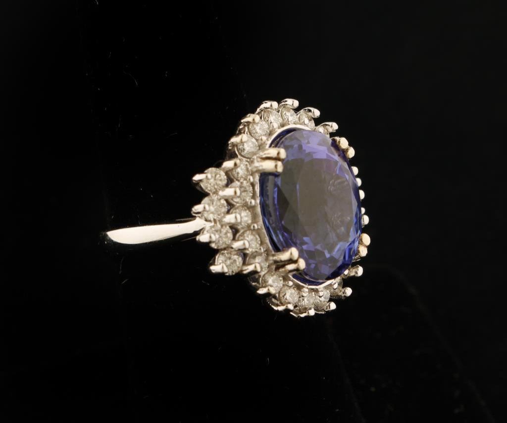 Ladies ring in 14K white gold set with an oval Tanzanite weighing approx. 9.5cts and Diamonds weighing approx. 1.2cts. Est.:$10,000-15,000