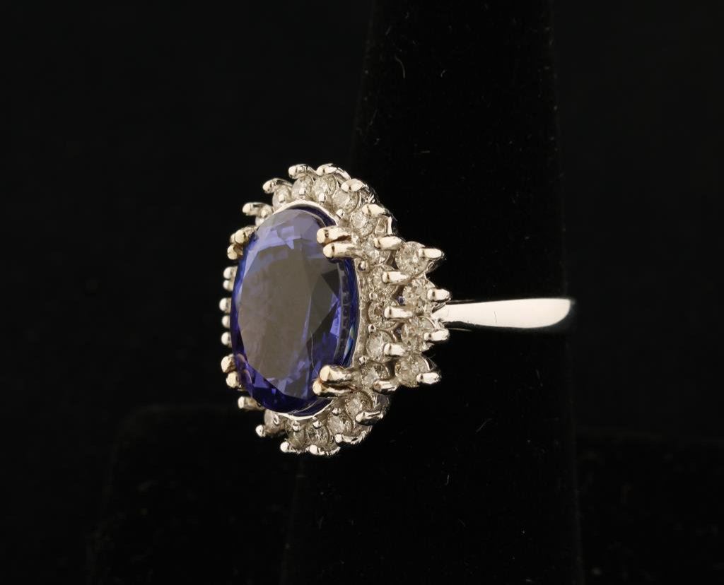 Lot 1030a Ladies ring in 14K white gold set with an oval Tanzanite weighing approx.