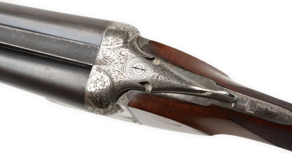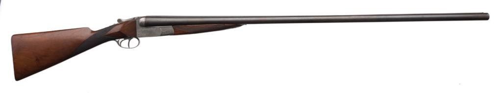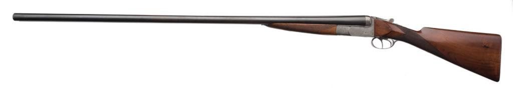 **Massive double barrel side by side hammerless box lock Goose Gun, 10 gauge, 43.5” barrels, engraved receiver, no visible S/N, blued barrels, checkered wood stocks in overall good to very good condition with Belgian smokeless proofs, ca 1920’s-1930’s. Est.: $2,500-$5,000.