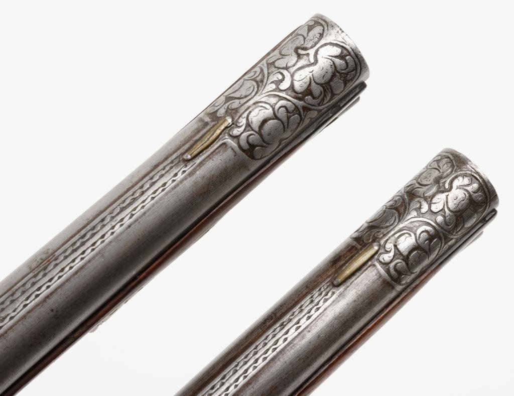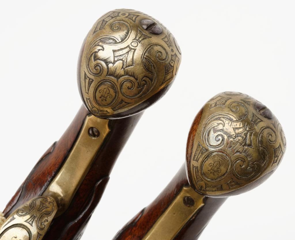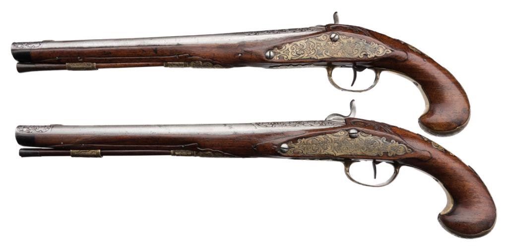 Lot 1050a Outstanding pair of 18th Century horseman’s size flintlock pistols convert