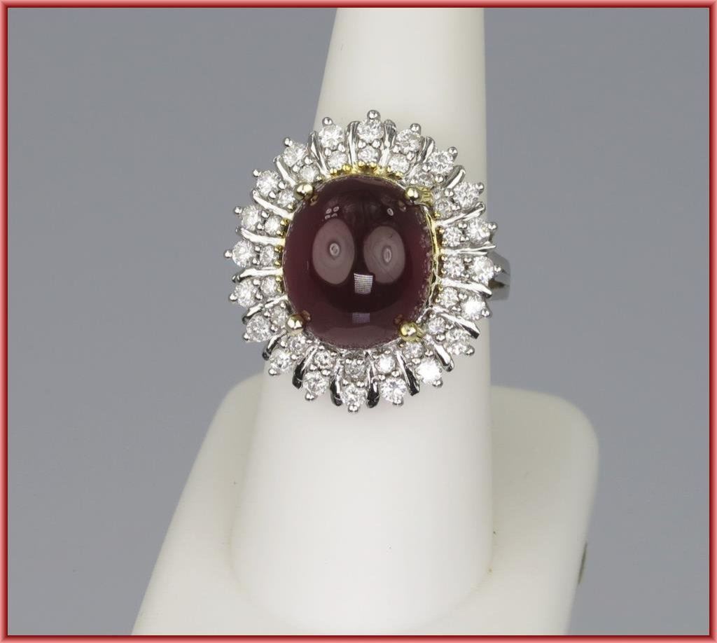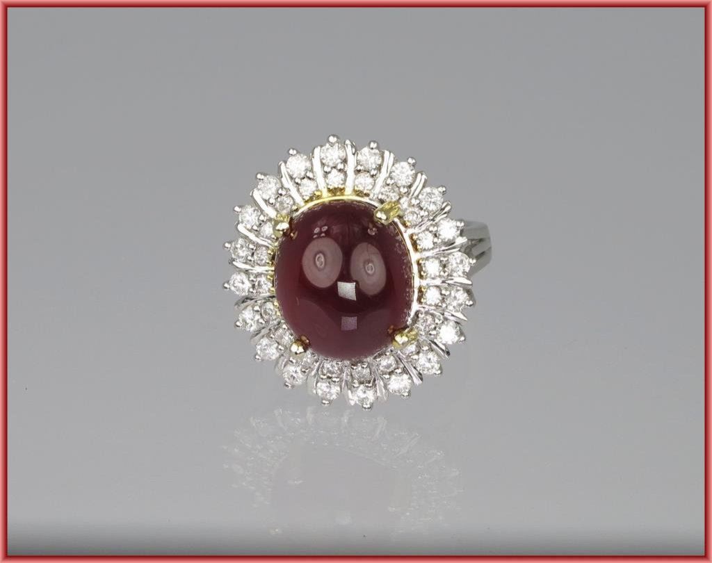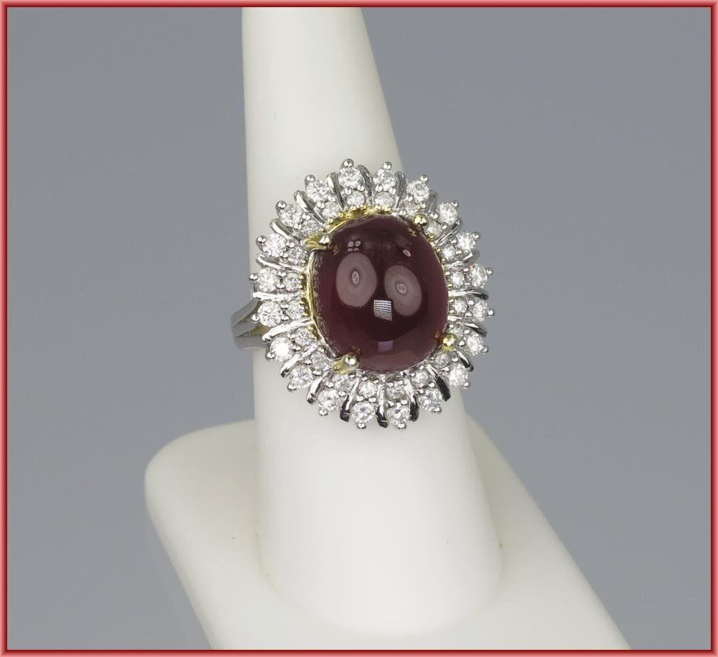 Lot 1061 Glamorous Cabochon Ruby and Diamond Ring featuring ruby weighing approx. 1