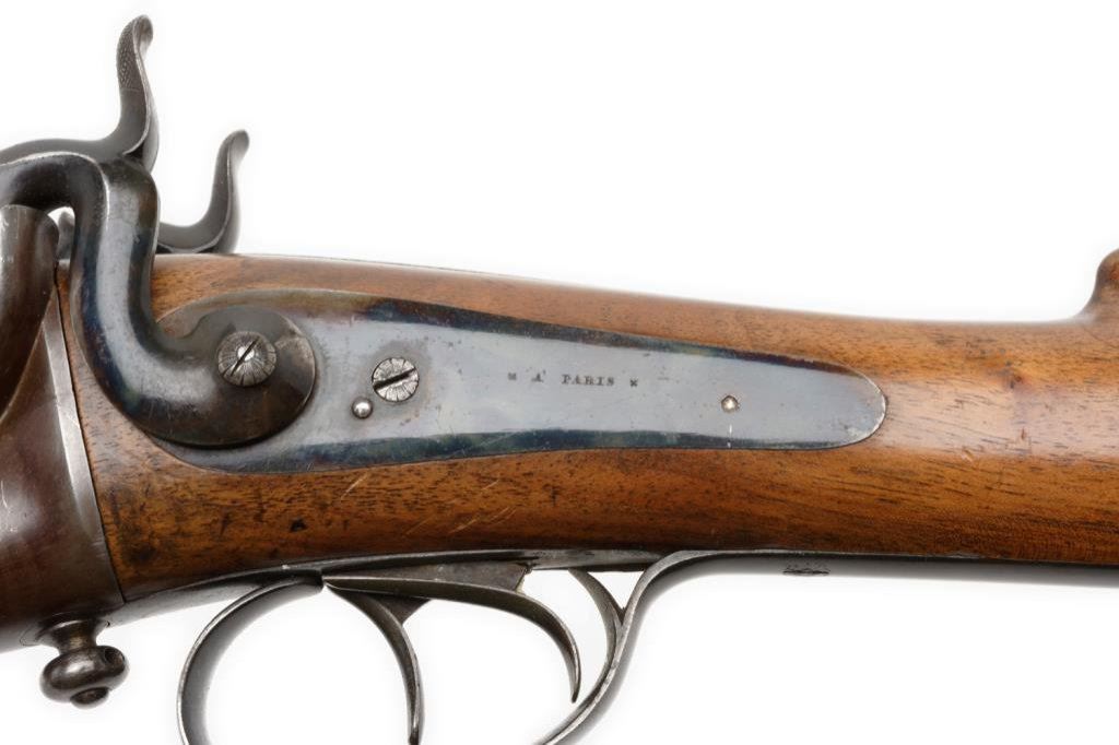 Lot 1067 Rare French over/under percussion carbine by Gastinne Renette, a most famo