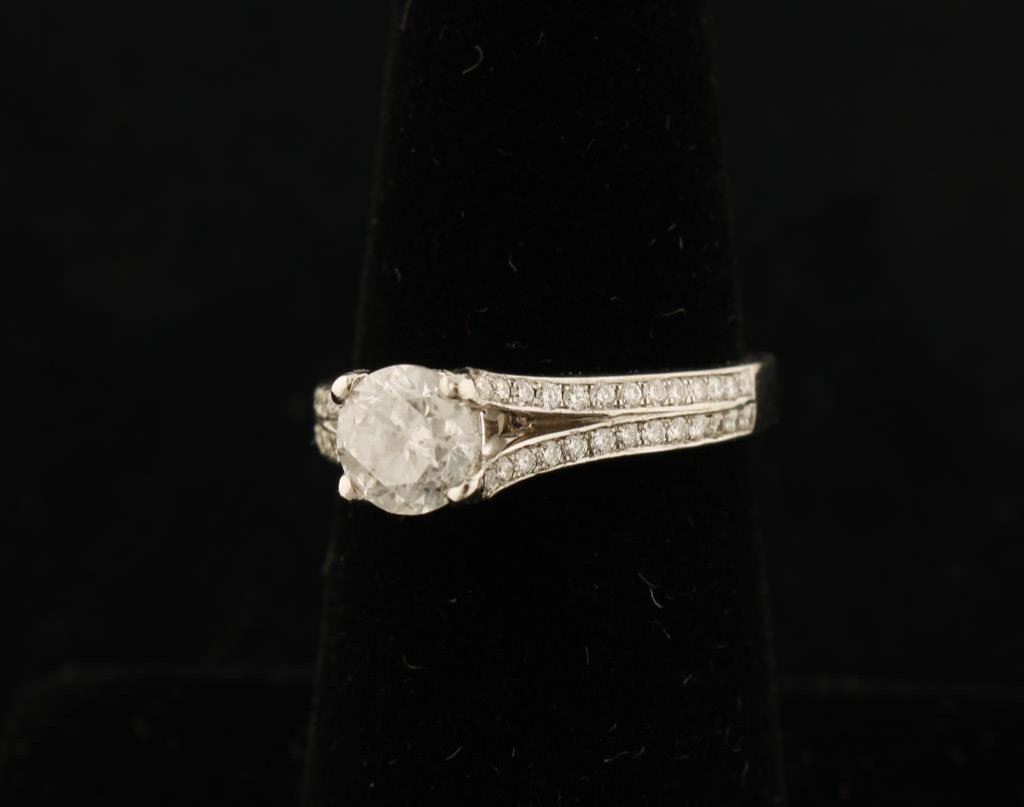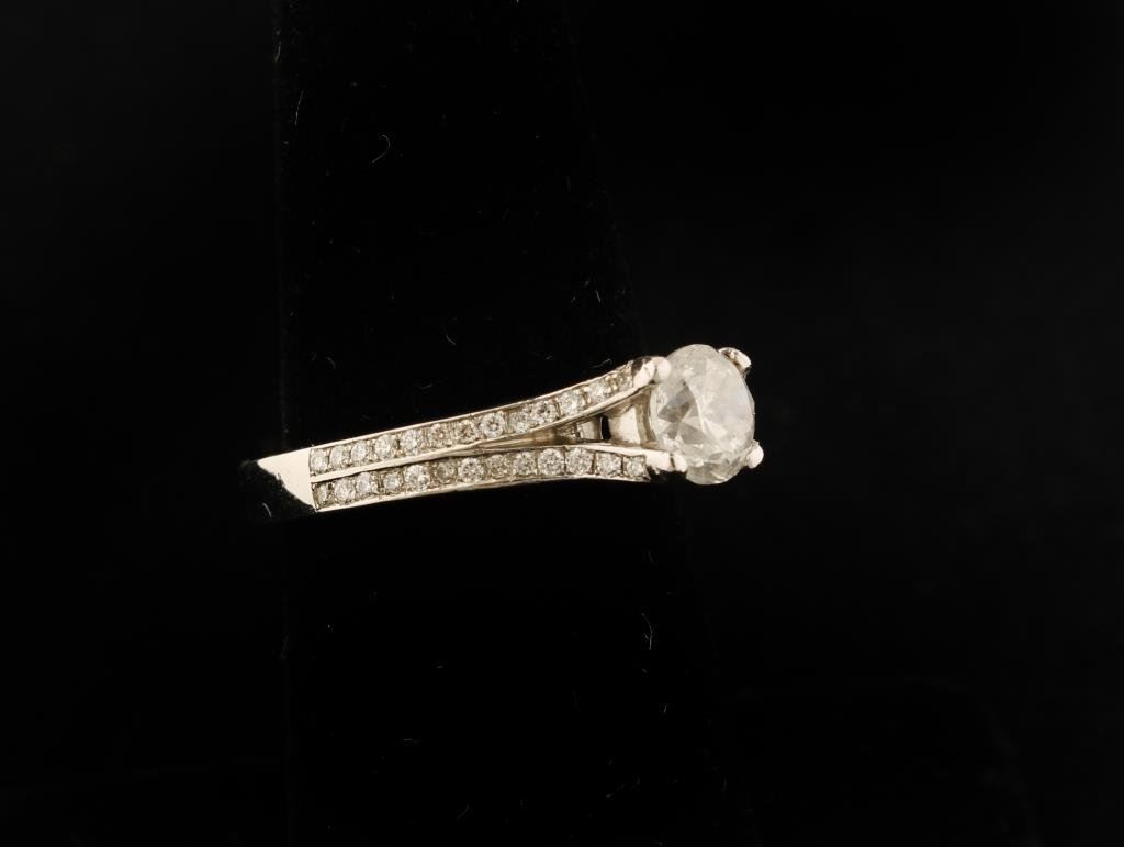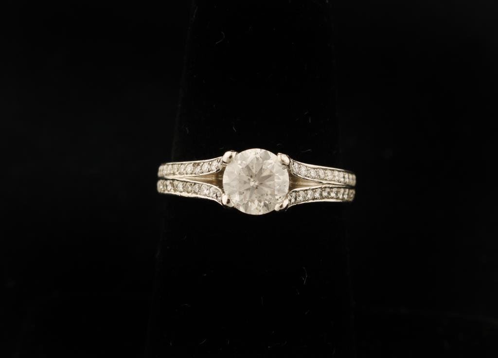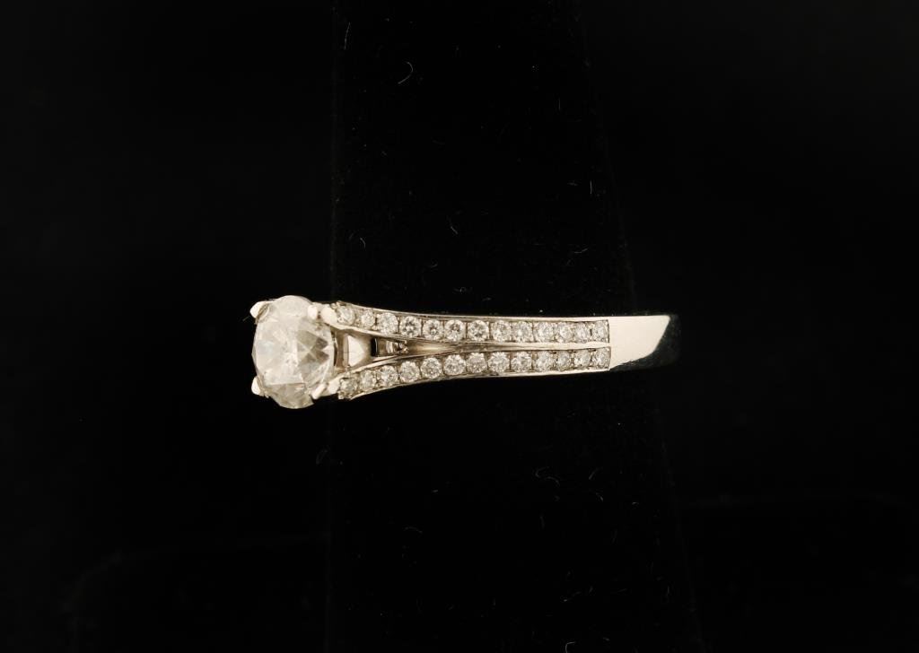 Lot 1091 .87 pt. Center Diamond mounted in Platinum with 1.20 accenting Diamonds, a