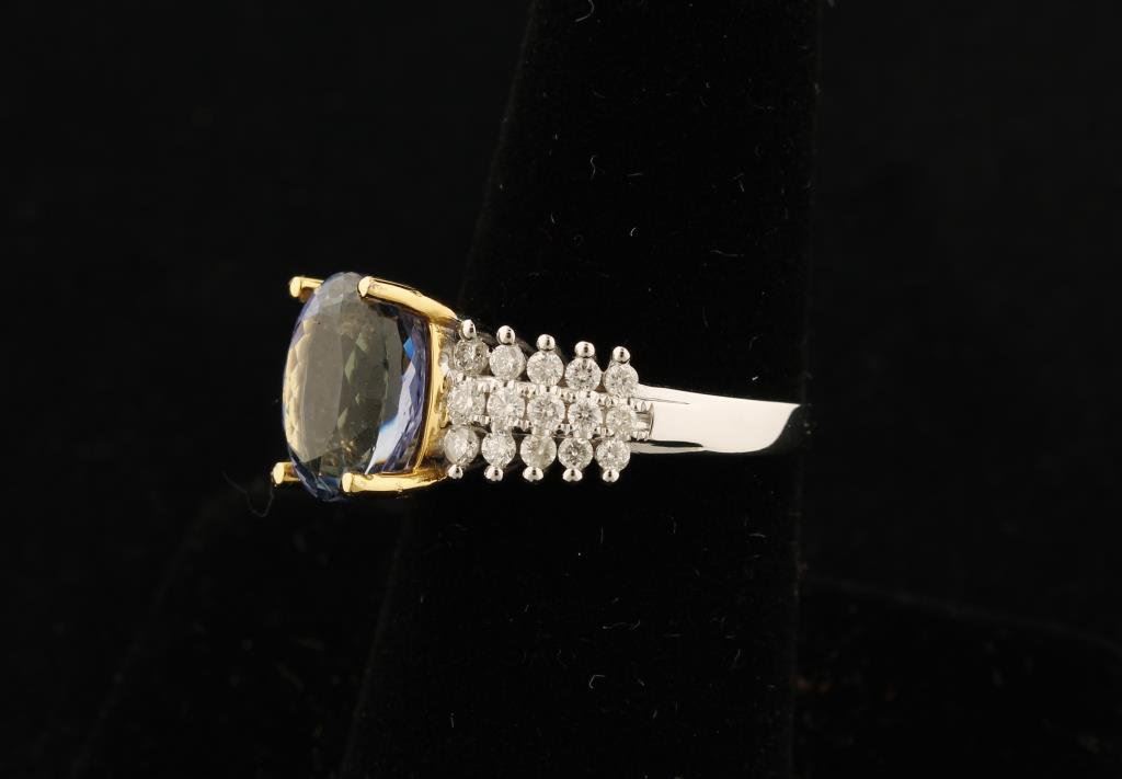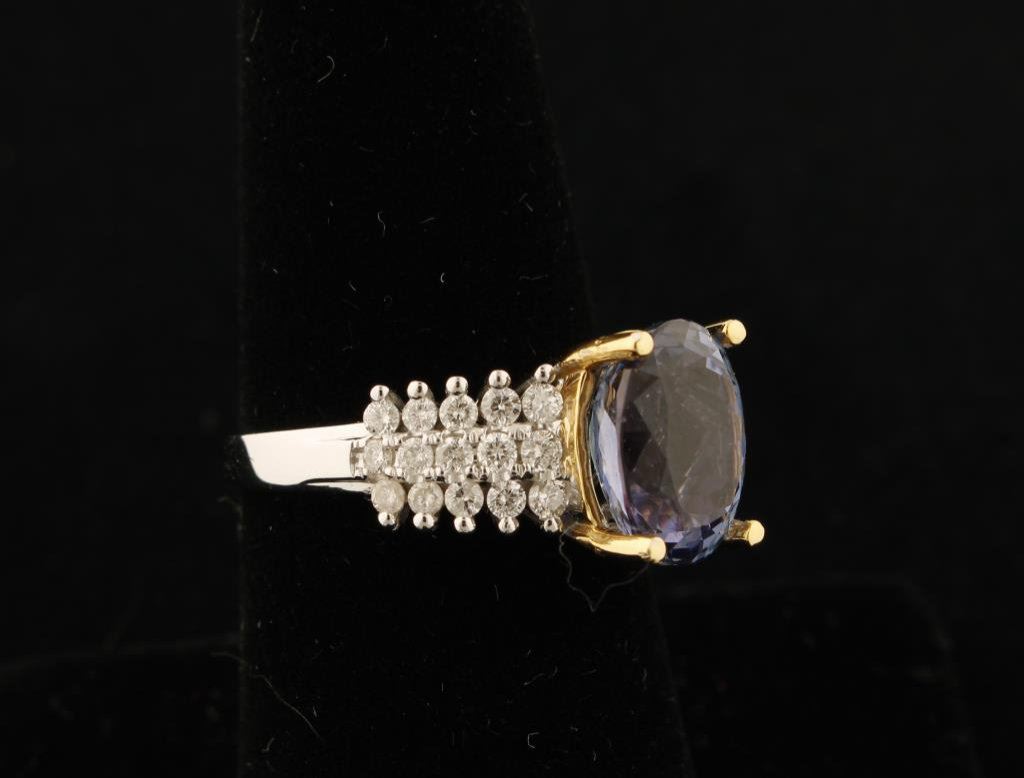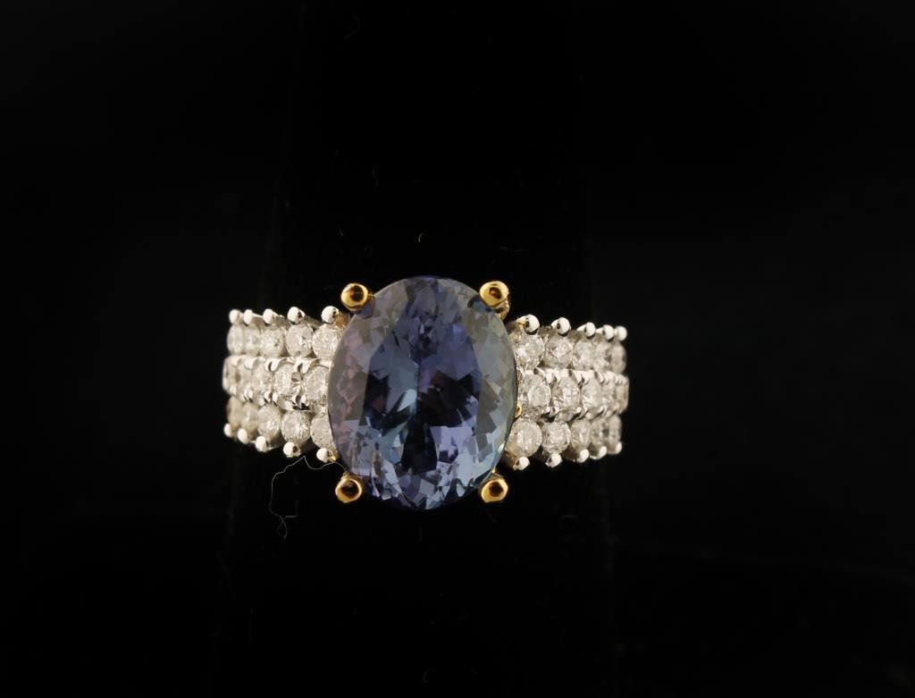 Lot 1092 Tanzanite approx. 5 carat (est. 4.96) in 14K with surrounding Diamonds. A.
