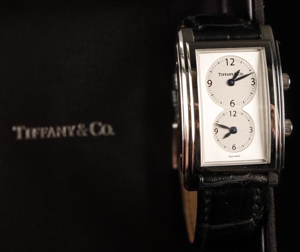 Lot 1093 Tiffany grand quartz resonator dual time zone wrist watch, signed dial and
