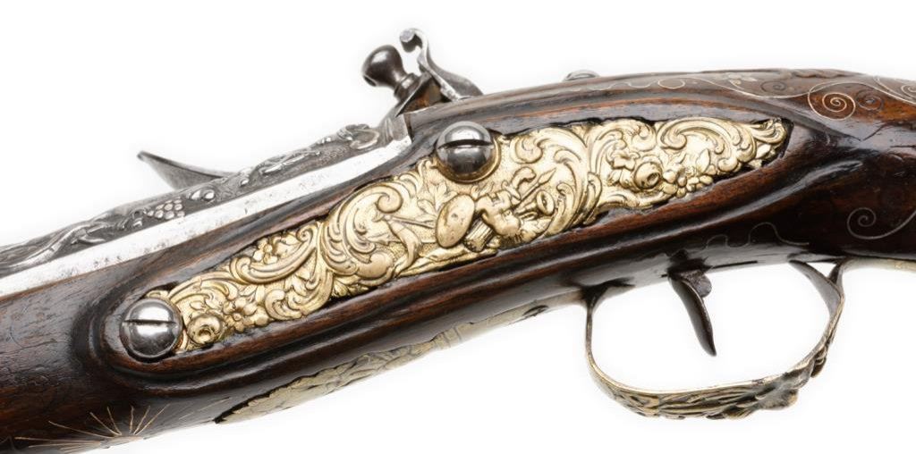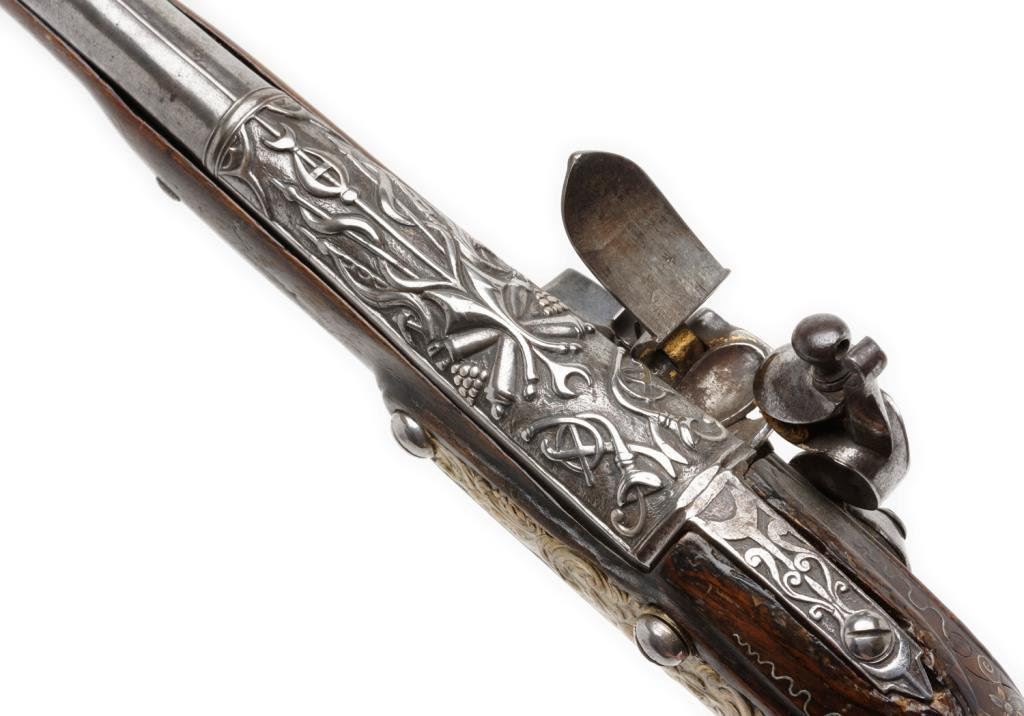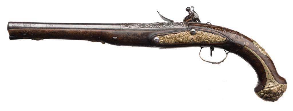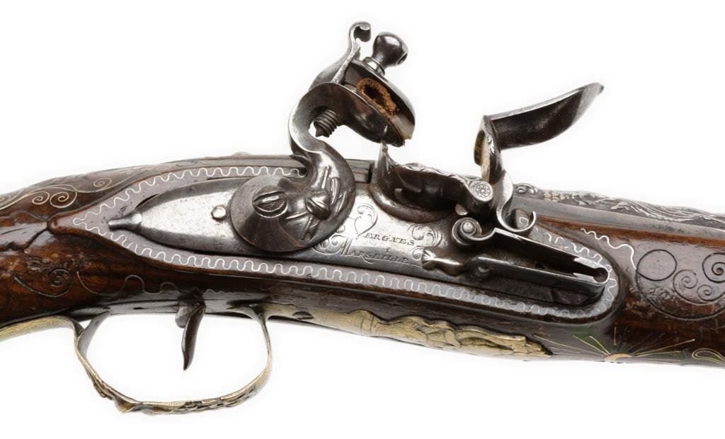 Lot 1097 Magnificent flintlock pistol signed “Vergnes A’ Marseille” with gold gilde
