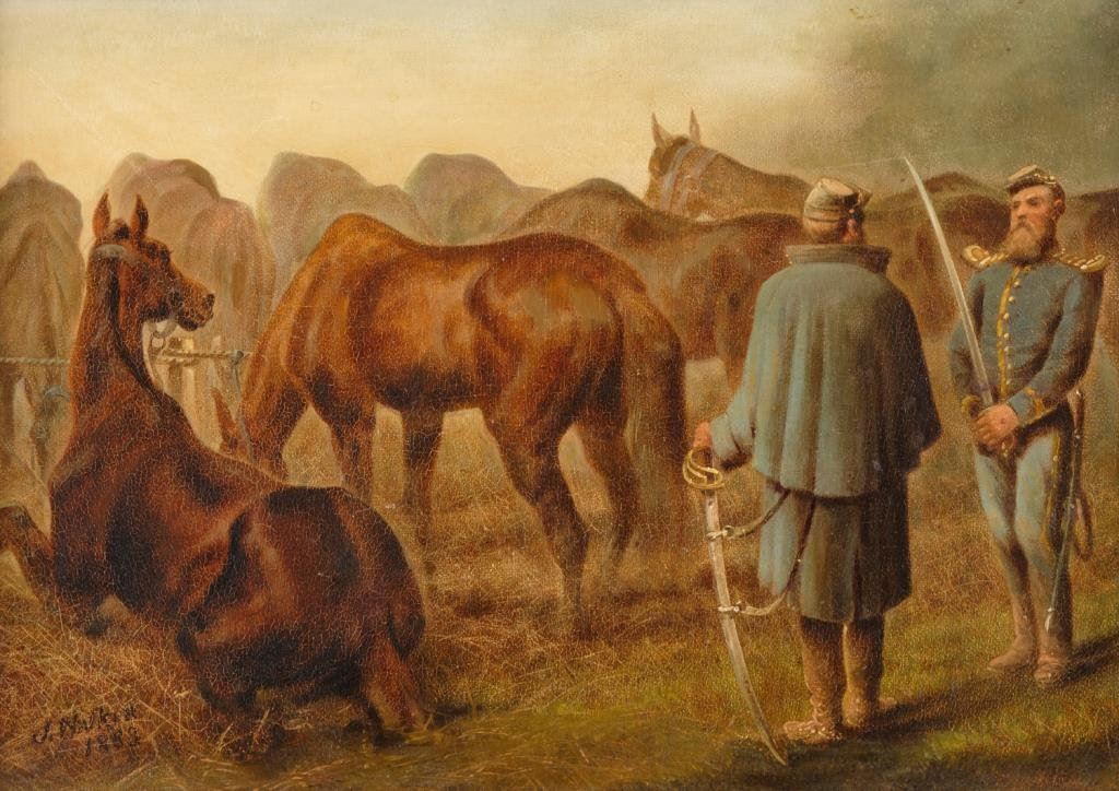 Lot 1100 Original oil on canvas signed lower left “J. Walker 1883”. Portrays 2 Cava