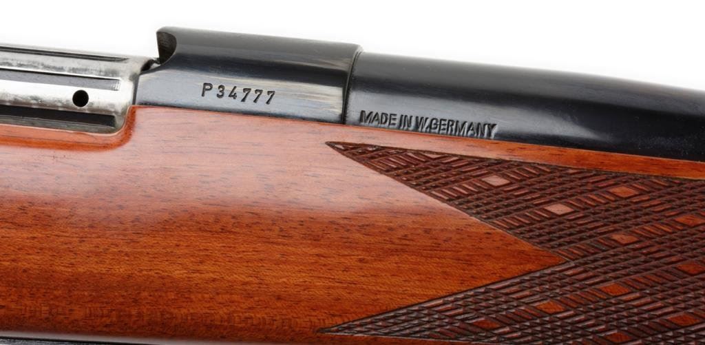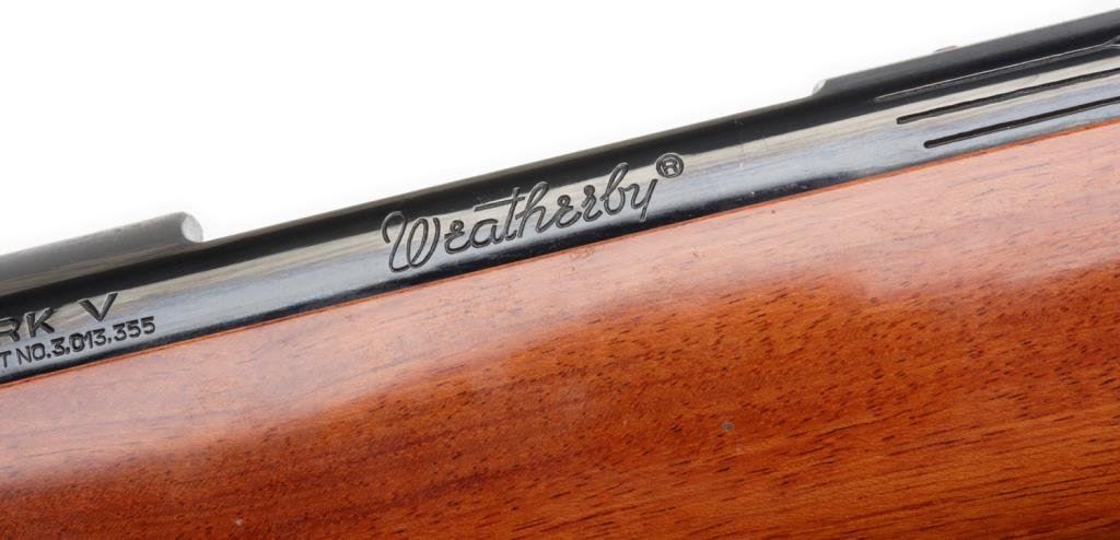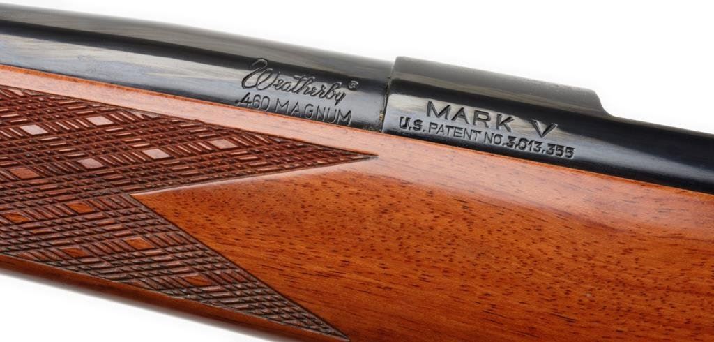 West German marked Weatherby MKV in .460 Weatherby mag caliber with a 26” heavy BBL that is ported. Custom shop marked floor plate and exceptional red colored special stock with hand checkering. Engine turned bolt and follower. In excellent to near new condition and no evidence of use. A collector’s grade and very special Weatherby. Est.: $2000-$4000