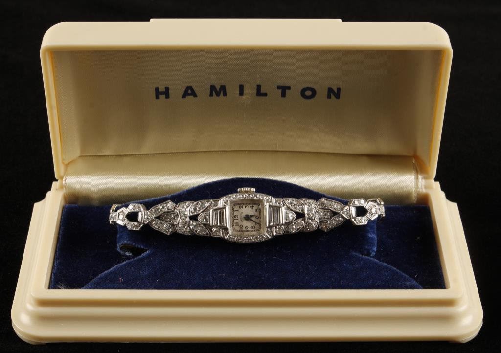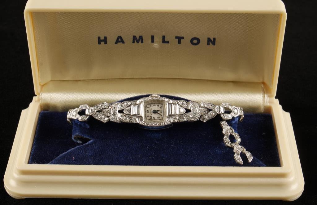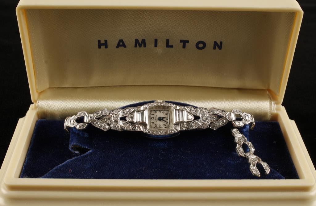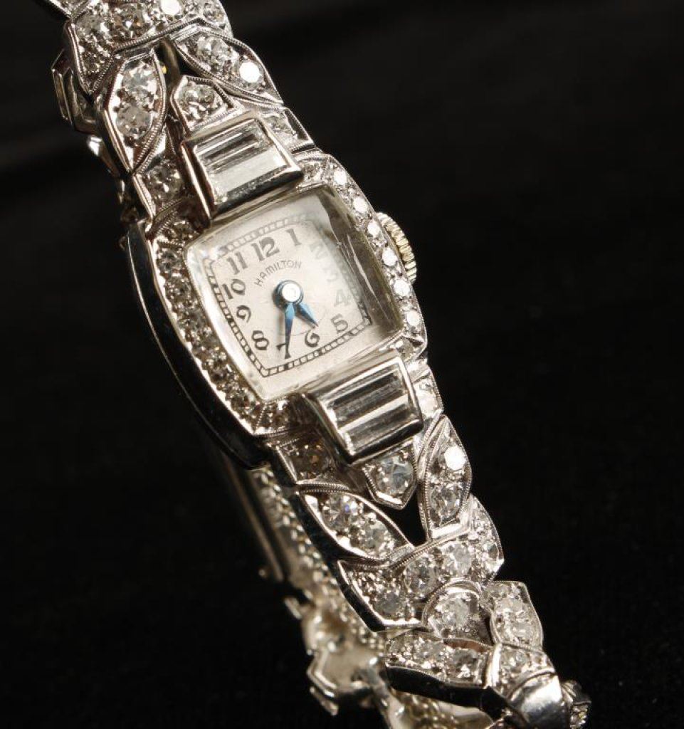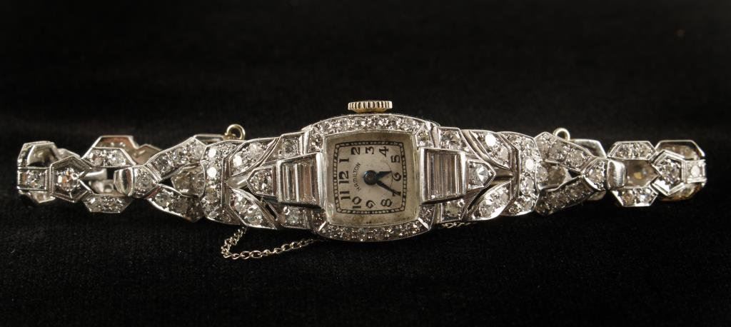 Lot 1107 Important and capital quality art deco diamond and platinum wristwatch set