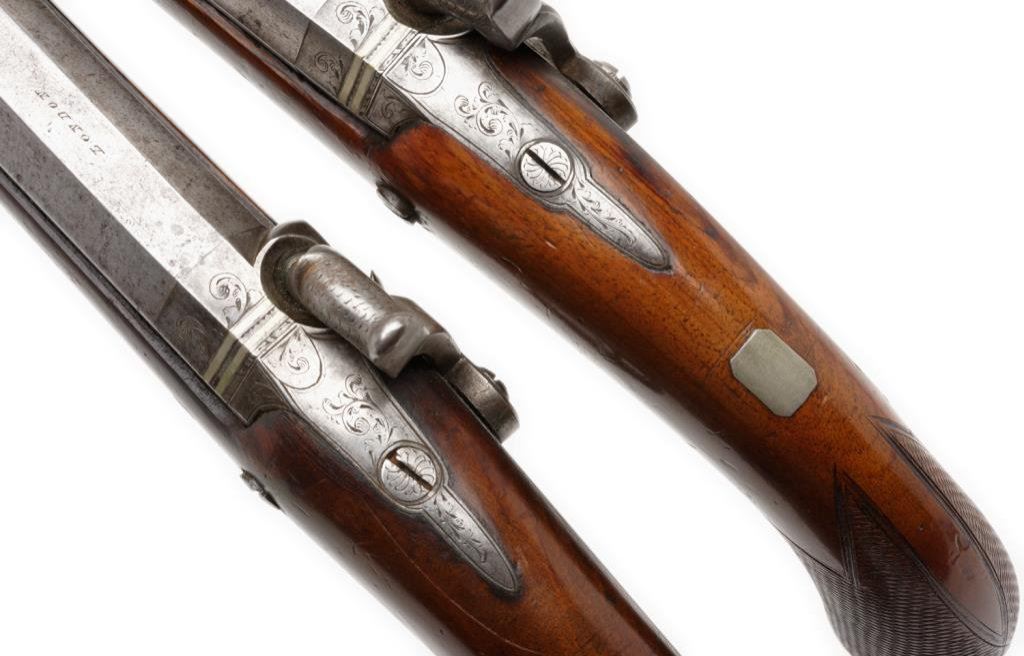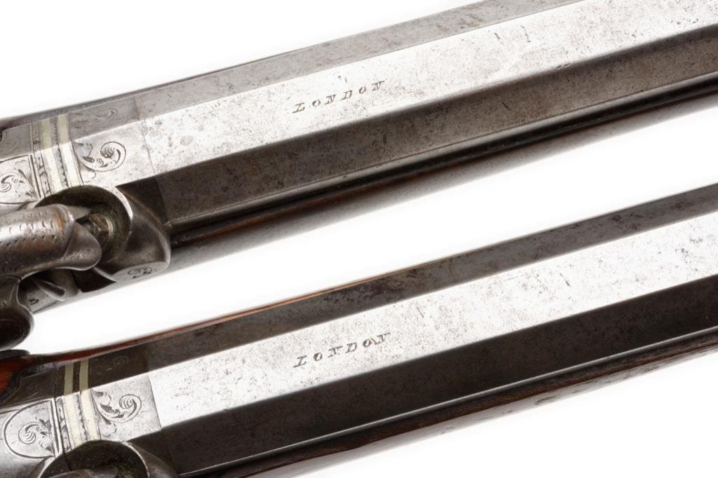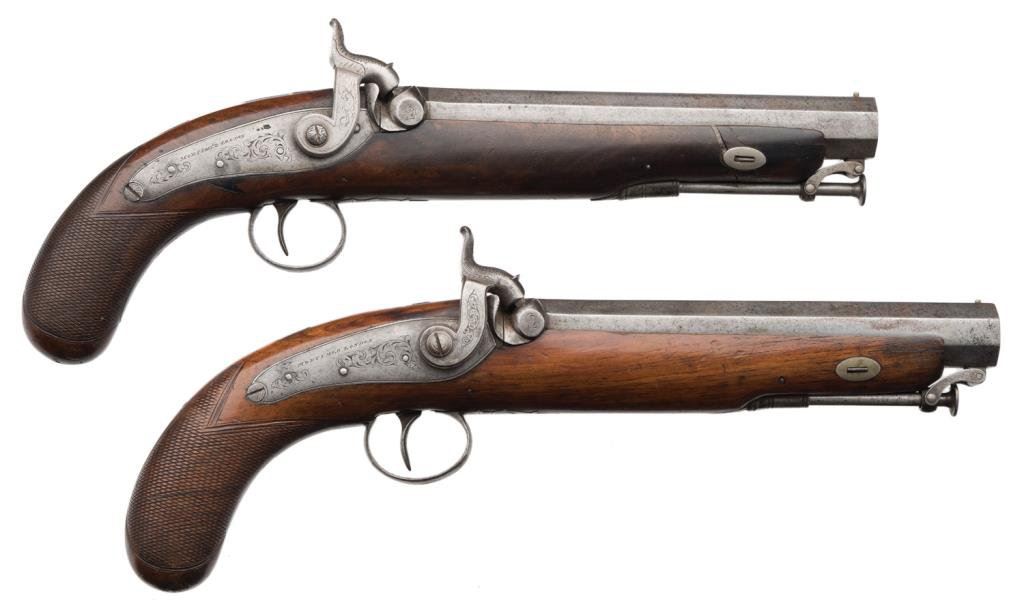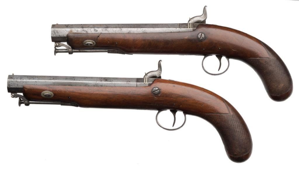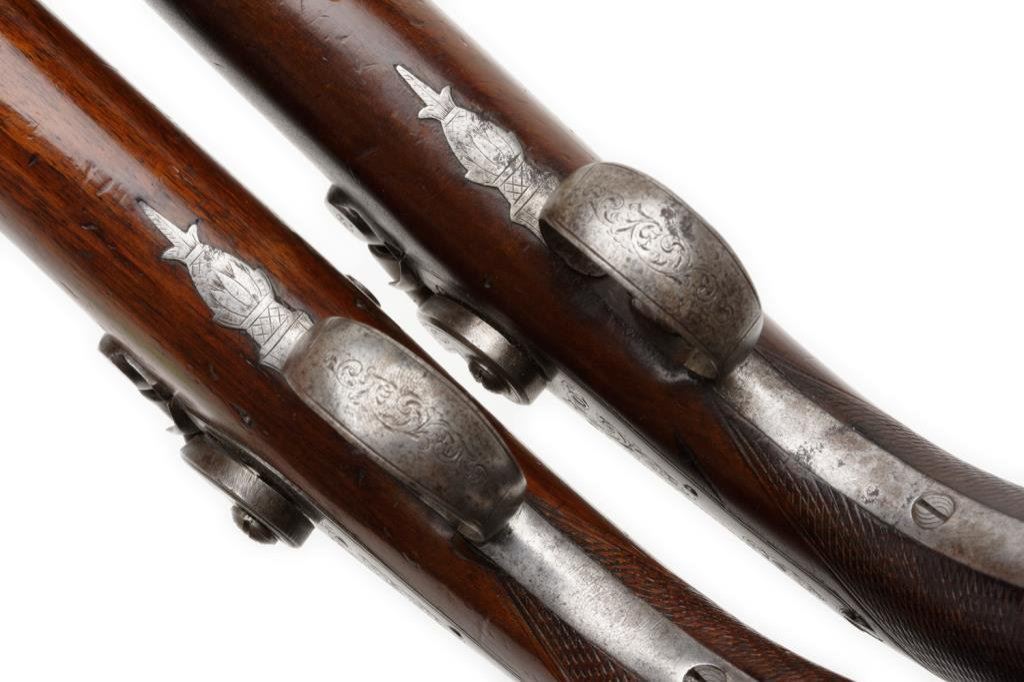 Lot 1113 Pair of large bore pistols of style favored by officers signed “Mortimer