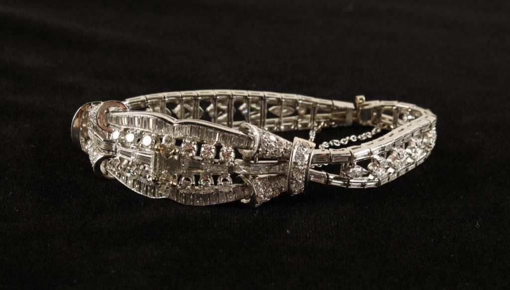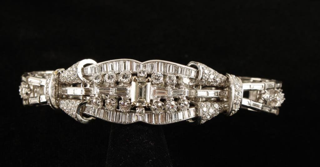 Lot 1137 Capital and estate quality platinum art deco bracelet set with 11.17 carat