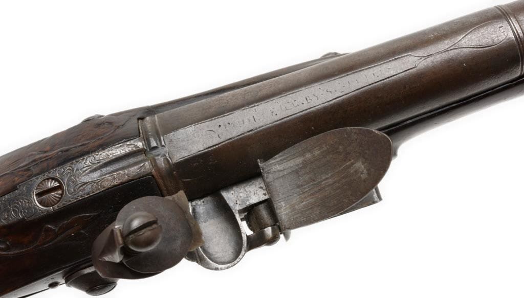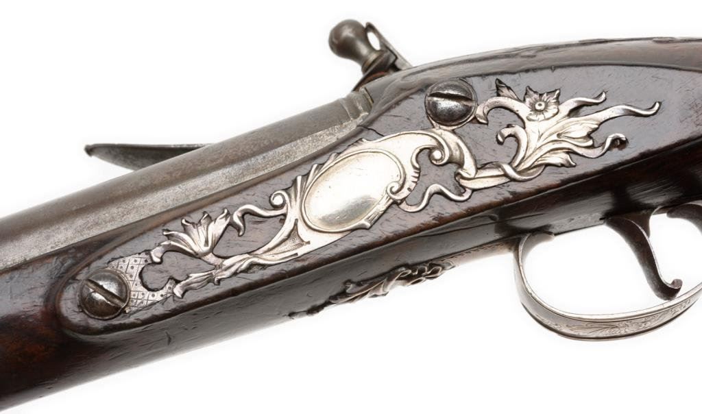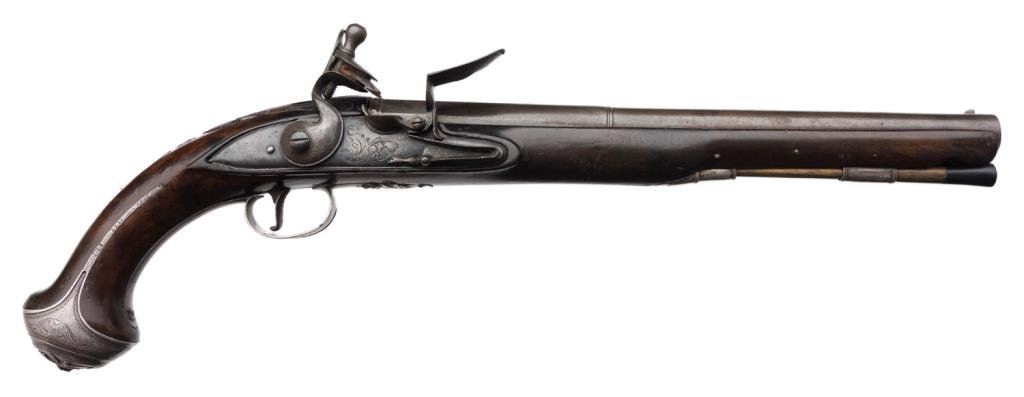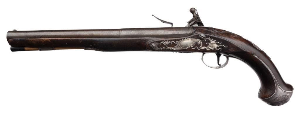 Lot 1145 Silver mounted Horseman’s size flintlock pistol by Thorpe circa about 1760