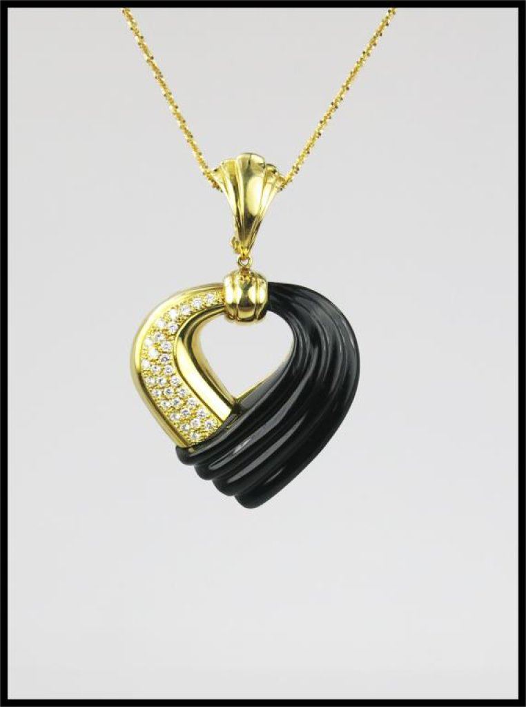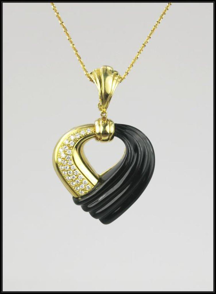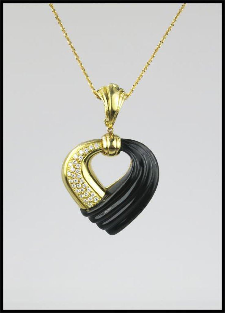Lot 1158 Sensational Diamond and Black Onyx Heart Shaped Pendant hand crafted in It