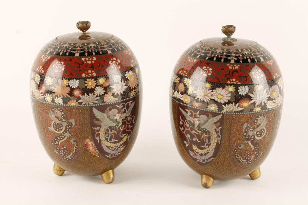 Lot 1182 Pair of superb Japanese cloisonné covered jars circa late 19th to early 20