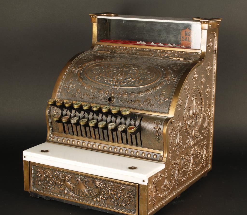 Lot 1190 Old brass National Cash Register; approximately 17” x 13” x 15” overall