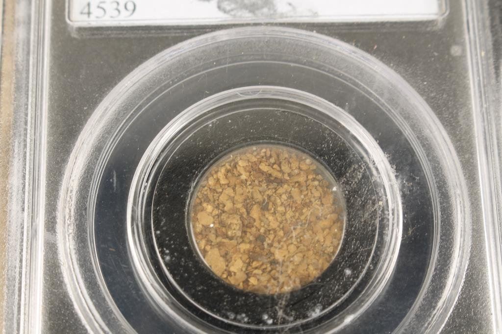 Lot 1204c Pinch of gold dust (1.5 Grams) in holder from Collector’s Universe off a s