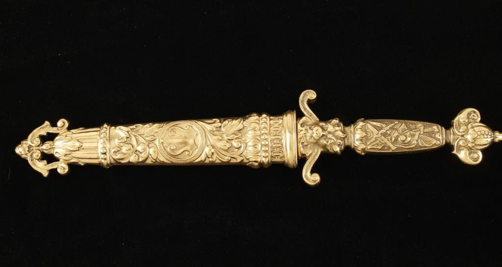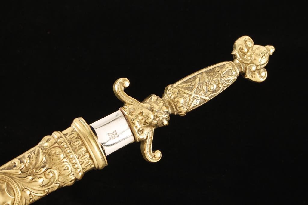 Lot 1210a Renaissance style dagger with fancy cast and gold plated grip and scabbard