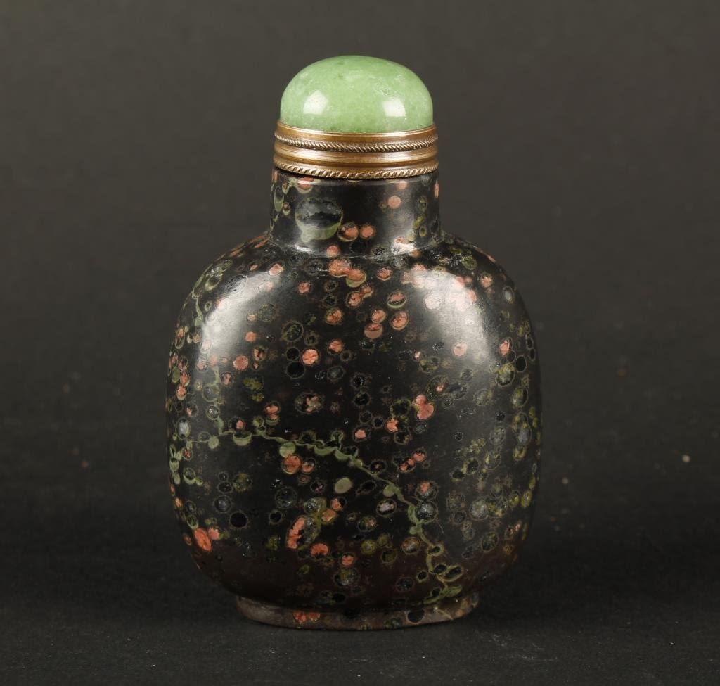 Jasper stone snuff bottle; plum blossom color; ca 1900. Est.: $300-$600.