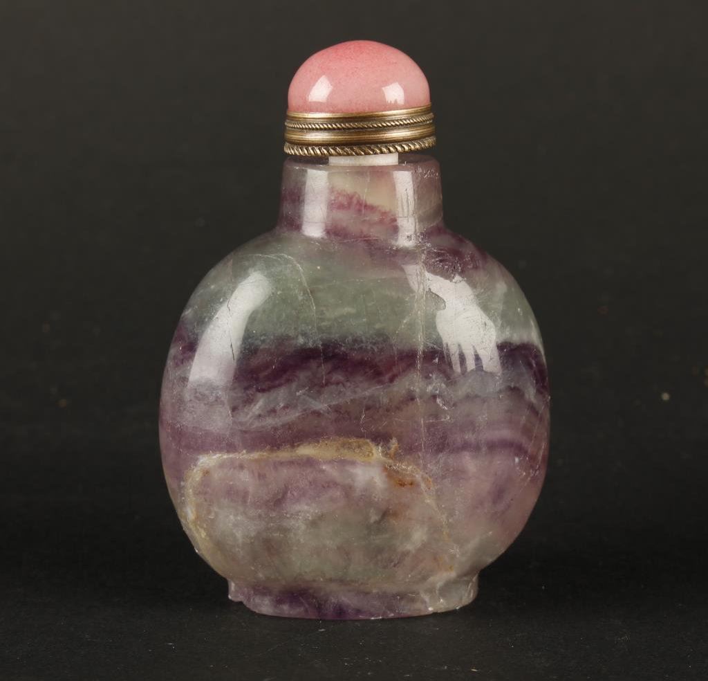 Amethyst snuff bottle, ca 1900. Est.: $300-$600.