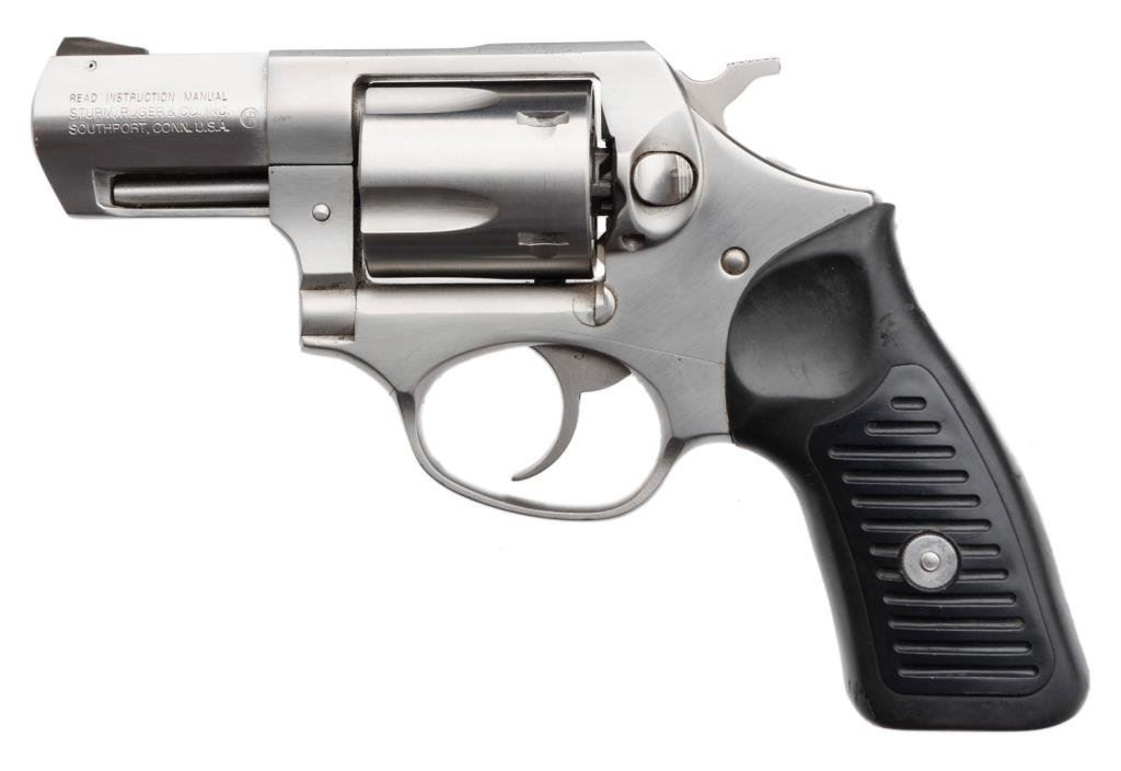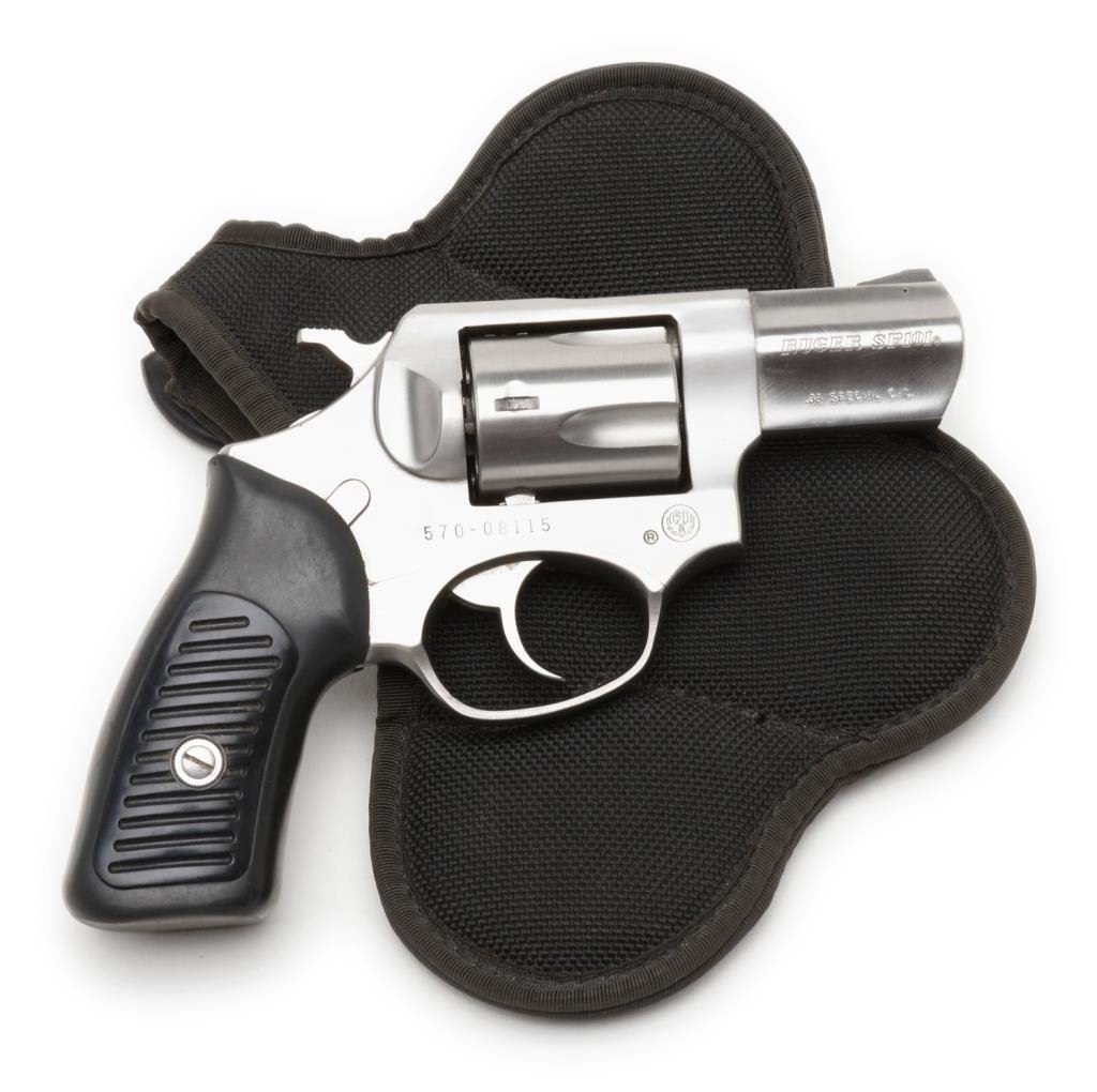 *Ruger Model SP101 DA revolver, .38 Special caliber, 2.5” barrel, S/N 570-08115, stainless steel, hard rubber grips in overall very good to fine condition with a crisp action, sharp markings, very good bore and grips; accompanied by a Bianchi Ranger series fabric holster. Est.: $250-$350.