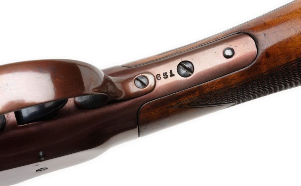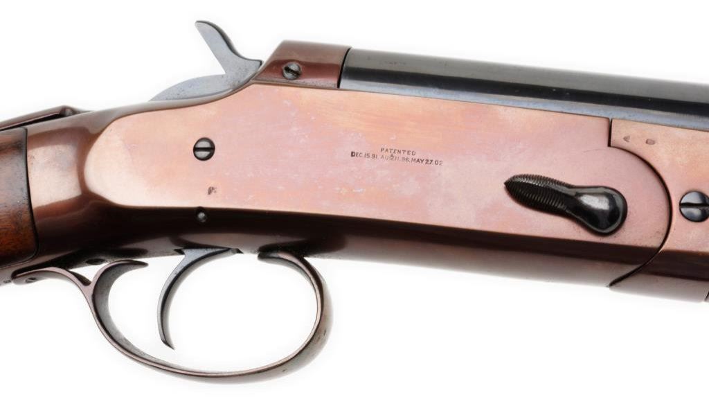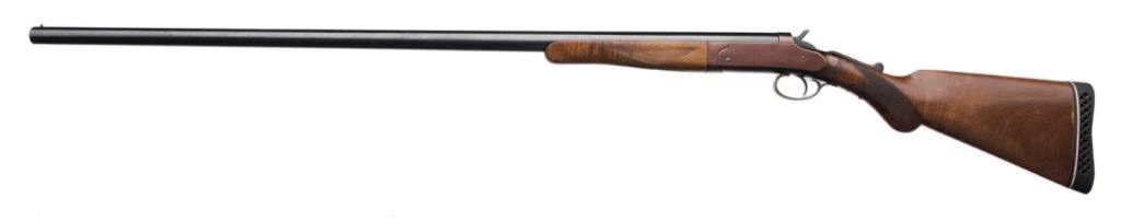 *Davenport single heavy barrel top break “Goose Gun”, 10 gauge, 40” barrel, S/N 651, old refinish, checkered wood stocks with hard rubber butt pad. This gun is in overall good to very good condition showing the majority of its older re-finish, very good + bore, crisp action, very good markings and wood stocks. Est.: $150-$300.