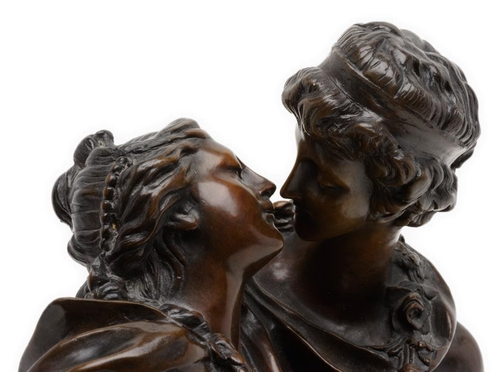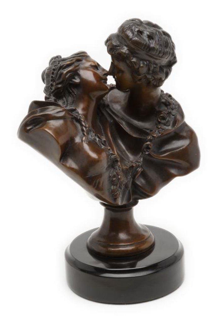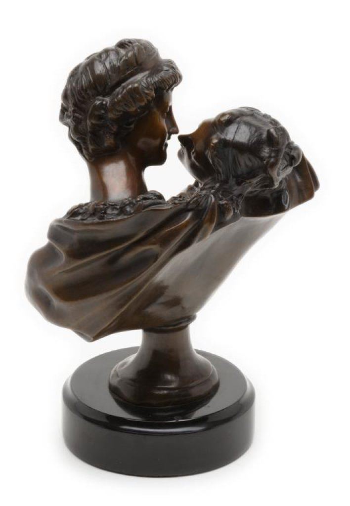 Lot 1263 Bronze older re-cast bust of two lovers on base, approximately 12” in heig