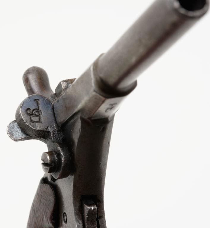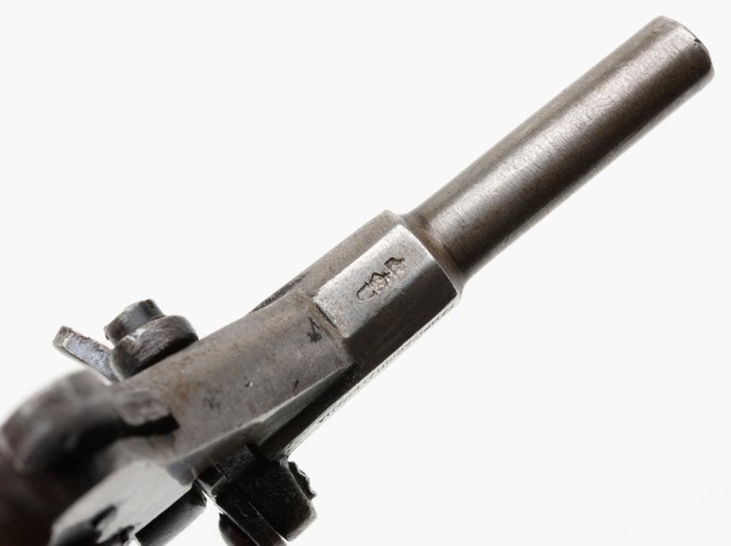Lot 1280 Antique single shot small pistol, .22 caliber, 2.25” barrel marked “FABRIC