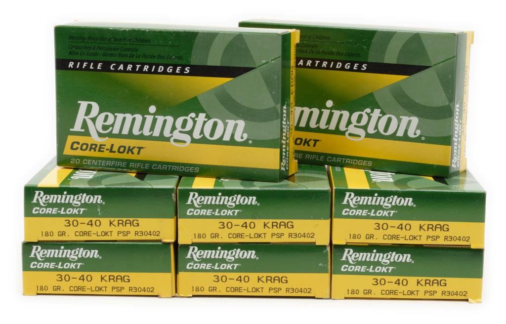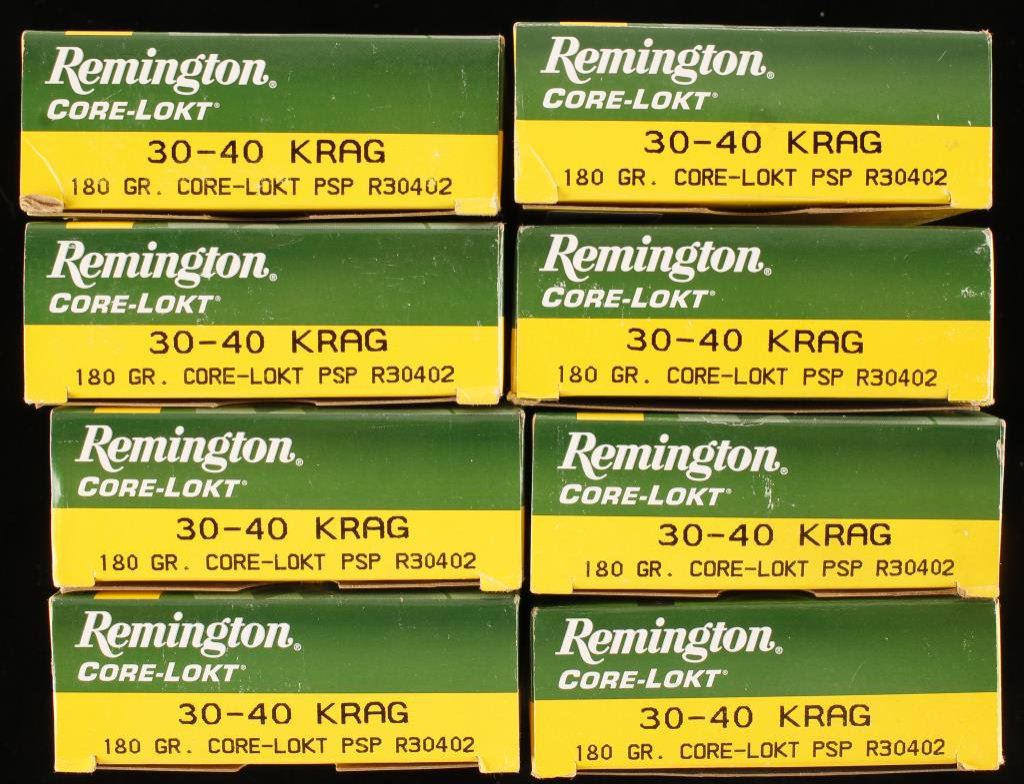 Lot of 8 boxes of Remington Core-Lokt .30-40 Krag ammunition. Est.: $125-$250.