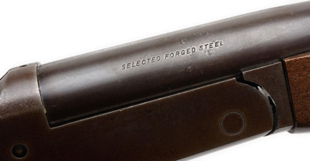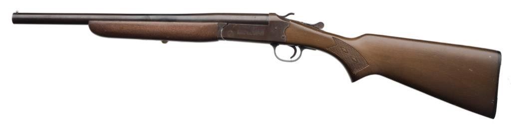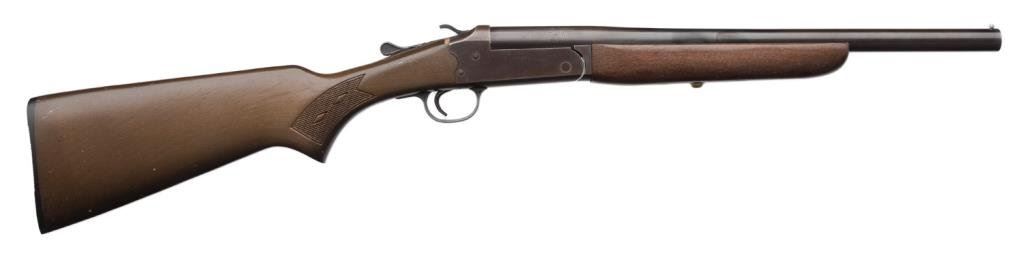 *Stevens Model 94 single shot shotgun, 16 gauge, 18.25” barrel, no visible S/N, blued finish, wood stocks in overall good condition. Est.: $75-$150.