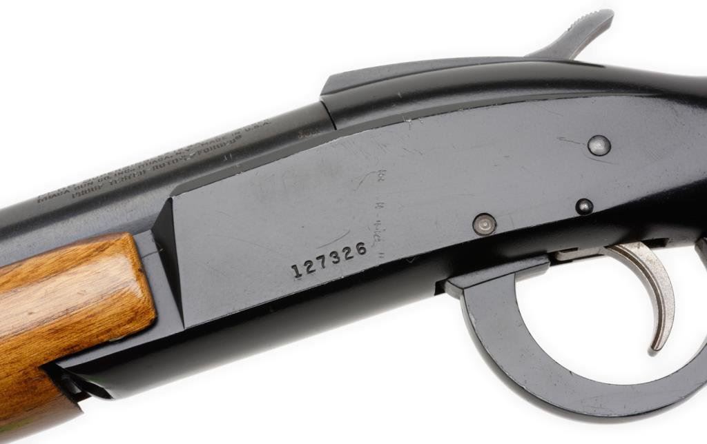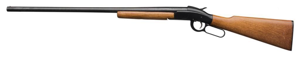 *Ithaca Model 66 lever action single shot shotgun, 12 gauge, 28.5” barrel, S/N 127326, black finish, wood stocks in overall very good to fine condition showing little use; some storage mars to wood. Est.: $75-$150.