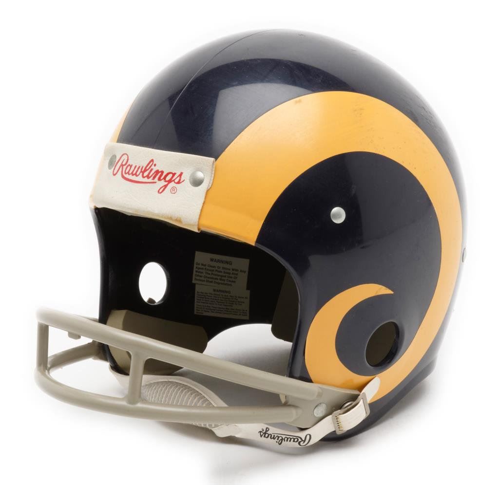 Rams football helmet with face guard by Rawlings; large size and in very good to fine condition. Est.: $75-$150.