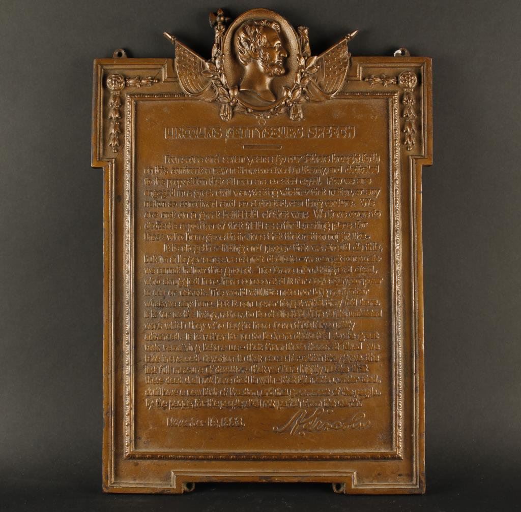 Lot 1319 Older bronze plaque with Lincoln’s Gettysburg Address in relief along with
